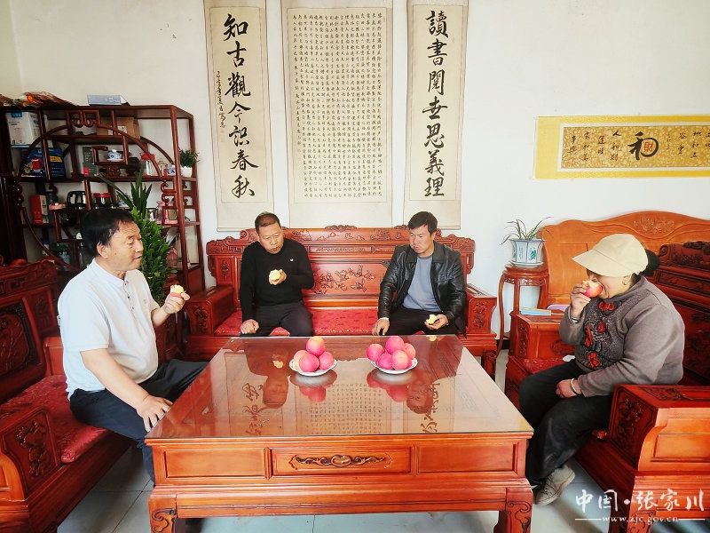 一进门,孙利利就端上了一盘红彤彤、圆润饱满的苹果。咬上一口,清甜的汁水瞬间在口中四溢,口感十分爽脆。交谈中得知,这些是去年“下捡”的苹果。那些符合收购标准的苹果,一斤能卖到五元左右,早早被客商收走了。他家四亩果园,纯收入有12万左右。他特意留了十几筐,就盼着在外务工的儿子一家回来能尝尝。“我们没有冷库,就把苹果放在闲置的房子里,这苹果还很脆呢。我以前做皮毛生意,后来母亲年纪大了,需要人照顾,我就回来种苹果,没想到收入还挺不错,打算再扩种3亩,有钱赚,干起来就更有劲头了!”孙利利脸上洋溢着满足地笑容。