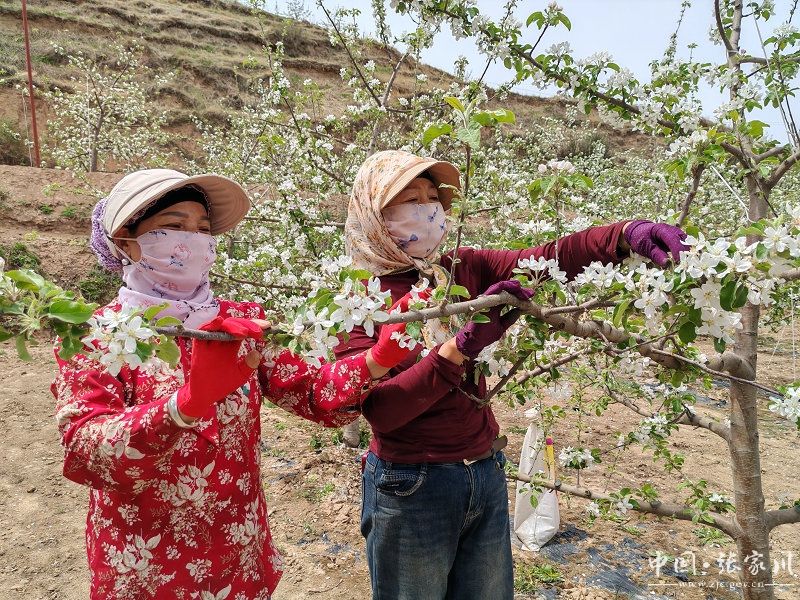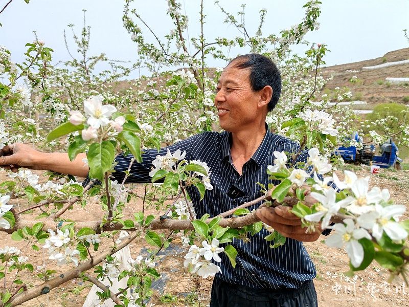果园里,300多亩的苹果花正灿烂地绽放枝头。花树间,果农们正专注地疏花,去掉多余的花朵,只为秋天能收获累累硕果。“我种了12亩富士苹果,果树都有十年树龄了,去年卖了20多万元。今年苹果花量特别大,已经到了盛花期,雇了几个工人来疏花,干了好几天,估计再有三四天就能完工,今年肯定又是个丰收年!”果农孙兔英信心满满地说道。