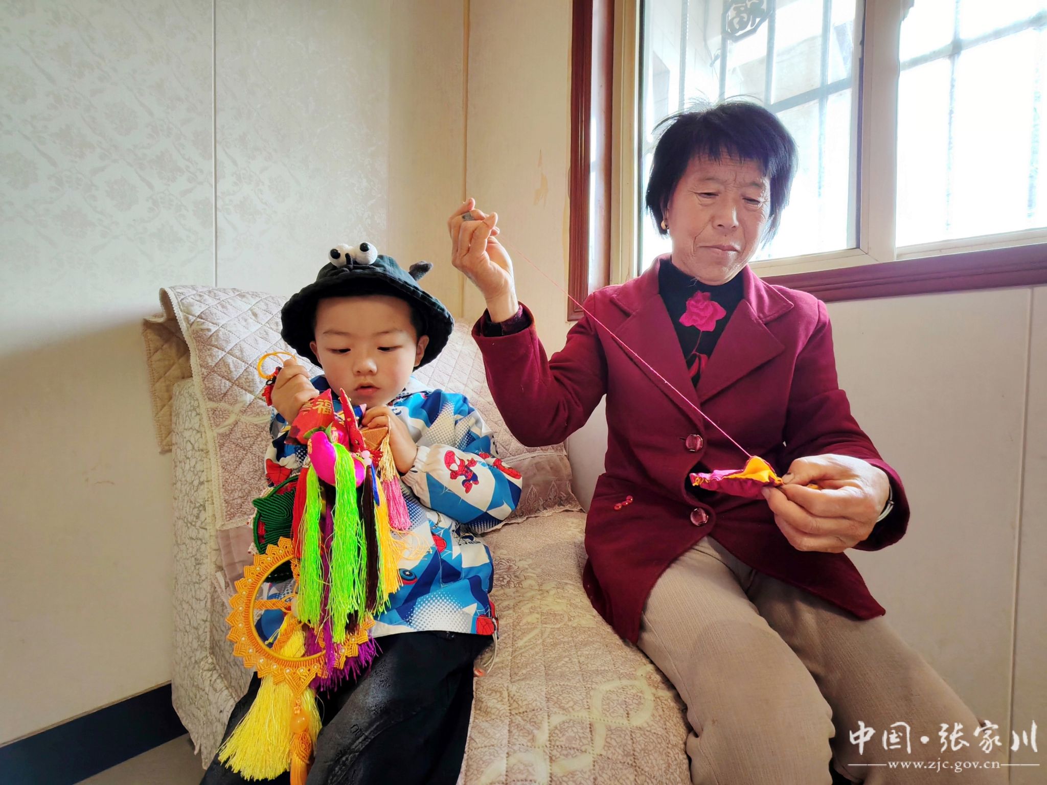 最让她高兴的是,村里的小娃娃们也扎进了这热闹里。我八岁的小孙女放学就往绣房跑,举着歪歪扭扭的针求我:“奶奶,教我绣小粽子!”她戳布的样子像只笨手笨脚的小鸭子,嘴里还哼着跑调的小曲:“端午到,荷包俏,五彩线儿手腕绕……”虽然绣得东倒西歪,但眼里的认真劲儿,和我小时候跟着娘学绣活时一模一样。我给她系上亲手编的五彩绳,挂上小粽子荷包,恍惚间又看见年轻时的娘,正把带着体温的荷包塞进我手里。