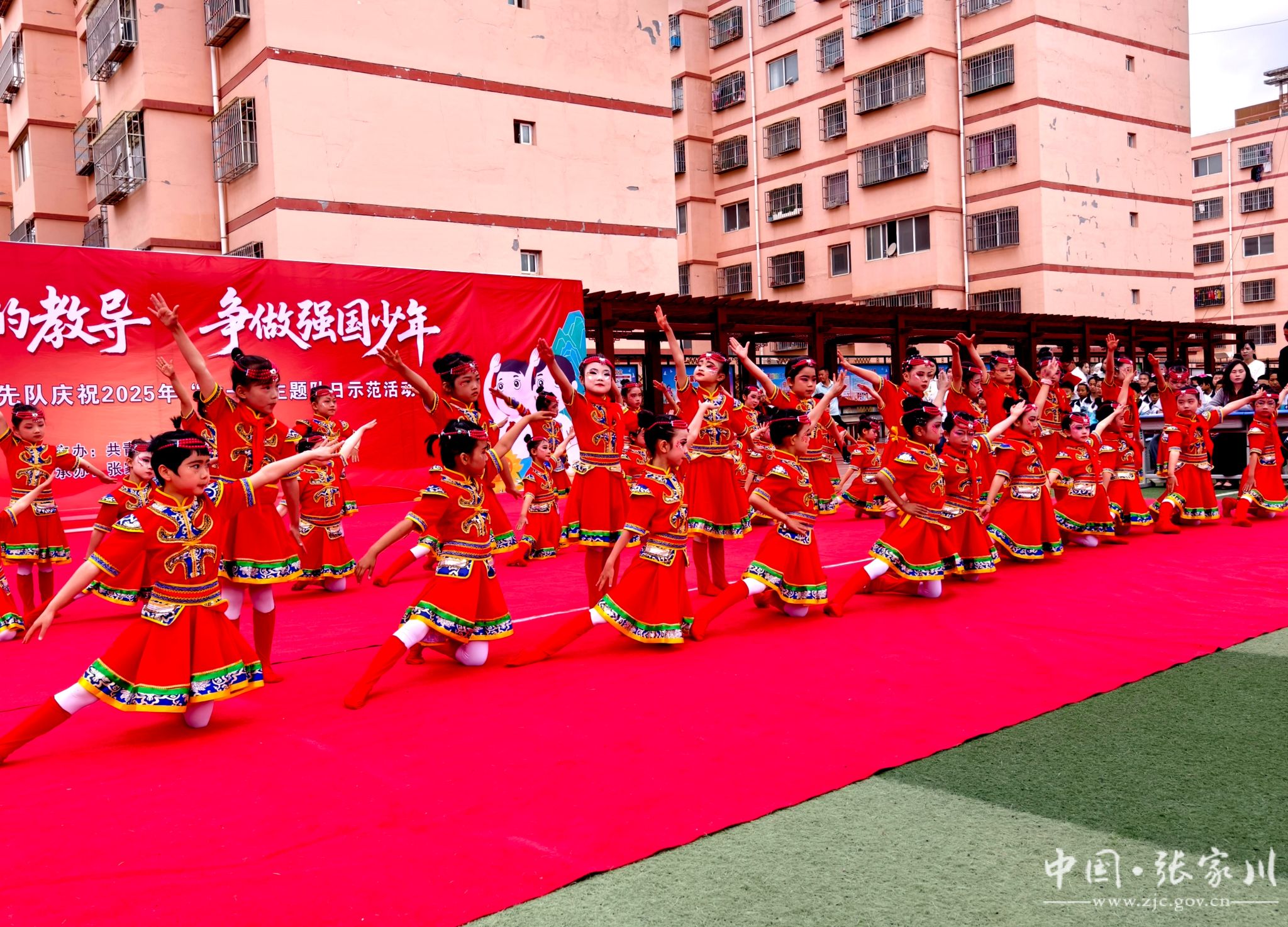 在活动中,少先队员们还带来了精彩的文艺表演,童真与活力交织绽放。一年级的小朋友化作《草原小骏马》,奔腾出稚嫩的朝气,怀揣着《我的科技梦》奔向未来;二年级的孩子们踏着《采茶声声》的韵律,用轻快的舞步演绎田园诗意,俏皮回答《答对了》的童真趣味。三年级少年舞动《风起特斯河·旗舞正少年》,尽显豪迈风采,尤其是别出心裁的《环保时装秀》,展现了孩子们的创意与环保理念,掌声与欢呼声燃爆全场。四年级组带领大家《重返90年代》,重温经典,更以《向快乐出发》《青春再出发》的昂扬舞姿,奏响青春序曲。五年级的同学们霸气登场,化身《我乃哪吒三太子》,秀出《中国范串烧》,以自信步伐诠释谁才是《这条街最靓的仔》。最后,校合唱团用纯净歌声唱响《布谷鸟》,为这场精彩纷呈的演出画上圆满句号,共同谱写属于孩子们的欢乐“六一”乐章!