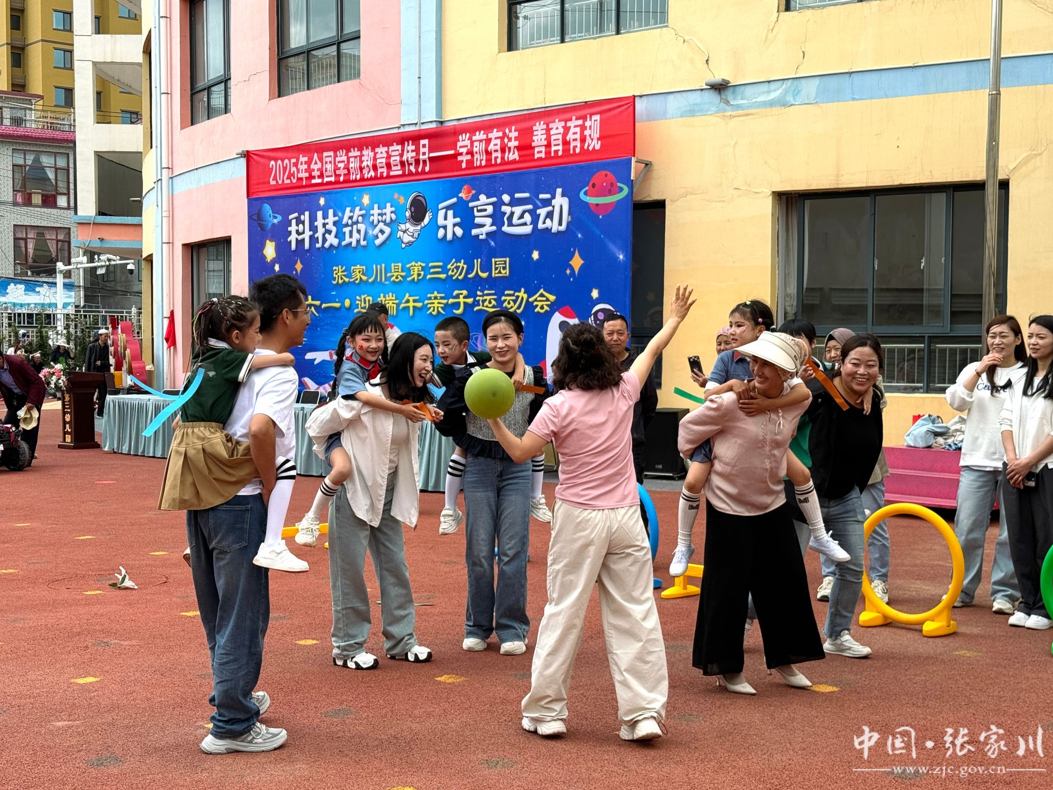 为迎接“六一”国际儿童节,传承端午传统文化,5月29日,张家川县第三幼儿园以“科技筑梦 乐享运动”为主题,举办了一场别开生面的亲子运动会。本次活动融合科技元素与运动精神,通过丰富多元的形式,为孩子们打造了一个充满欢乐与教育意义的节日盛宴。