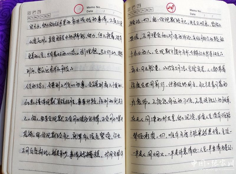 那天清晨,他把第一粒花种埋进酸奶盒。输液管扎孔做成浇花器,竹篱笆劈开编成花架,厨房废料沤肥滋养出40余种花卉。“有天疼醒,看见窗台上的多肉冒芽,突然就想:我得活着,看它开花。”书房五斗柜上,27本笔记整齐排列,这是他对生活最真实的感悟,一撇一捺间,是沧桑也是重生。早期写满“脑梗指标”的纸页间,渐渐长出诗句:“针管送进苦,花剪栽进甜,原来生命的两头,都能长出希望。”