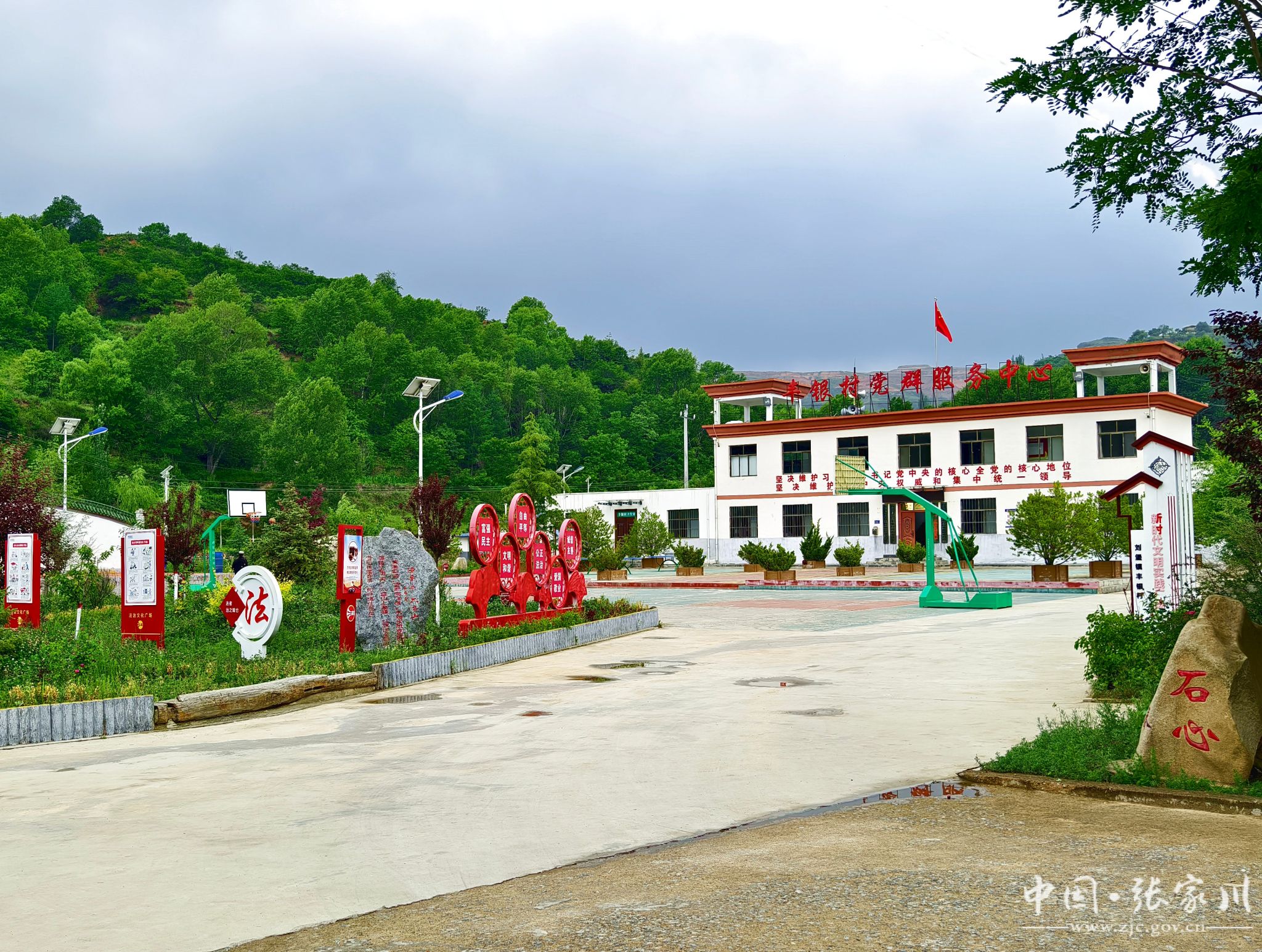 仲夏时节,张家川县刘堡镇丰银村绿意浓浓,郁郁葱葱的柳树迎风摇曳,整洁平坦的水泥路通往家家户户,因地制宜的特色产业蓬勃发展……处处焕发着美丽新颜,呈现出一派欣欣向荣的景象。