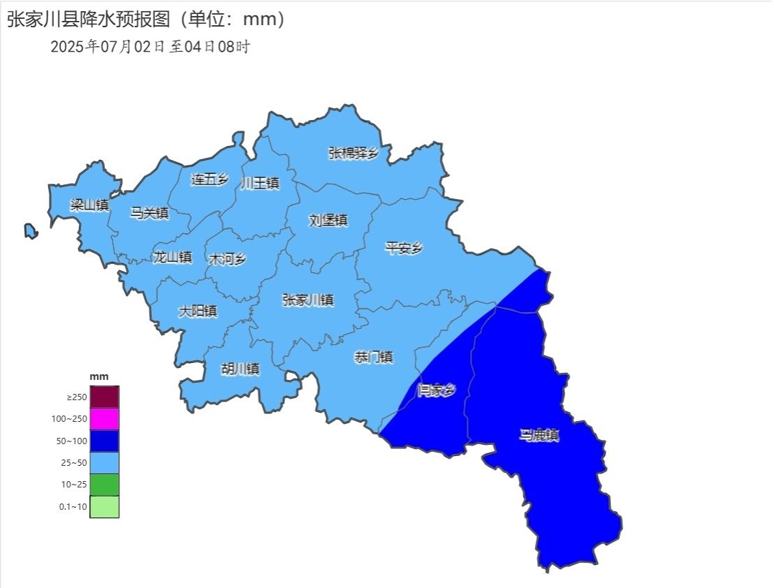 马鹿镇、闫家乡、恭门镇、平安乡、胡川镇、张家川镇及其他各乡镇山洪、地质灾害隐患点,沿河沿沟、靠山临崖及地势低洼地带。