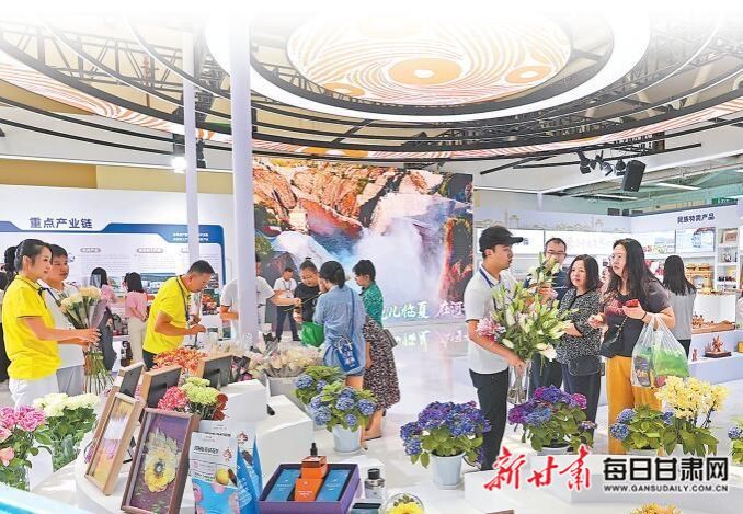 临夏馆鲜切花吸引众多参观者购买。