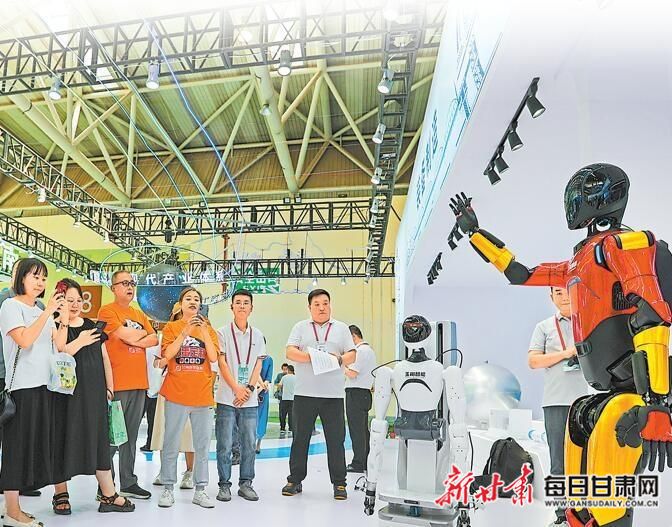 兰州馆内,参观者与机器人展开互动。本组图片摄影:新甘肃·甘肃日报记者 田蹊
