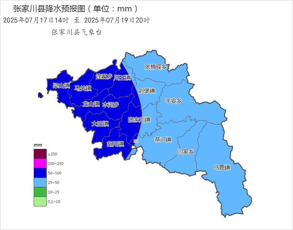 梁山、马关、连五、川王、龙山、木河、大阳、张家川、胡川等乡镇及其他各乡镇山洪、地质灾害隐患点,沿河沿沟、靠山临崖及地势低洼地带。