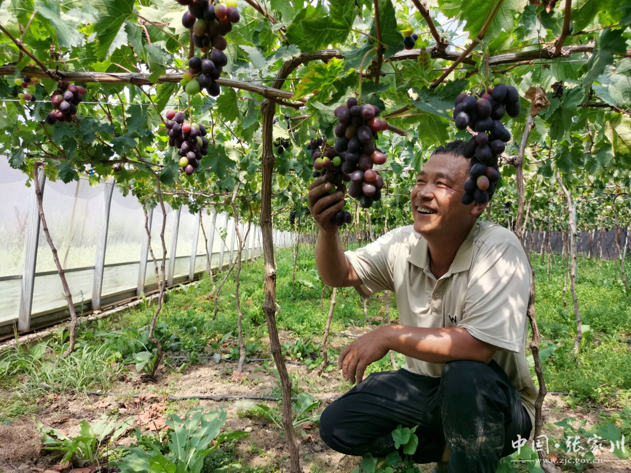 盛夏七月,张家川县马鹿镇鹏强合作社的设施大棚里,一串串紫红色的葡萄沉甸甸垂挂枝头,像玛瑙般饱满诱人。马强正俯身在藤蔓间,仔细检查果实的成熟度,白色T恤早已被汗水浸透,紧紧贴在背上。“咱当过兵的人,就认一个理,要么不干,要干就干出个样子来!”马强擦了擦额头的汗水。