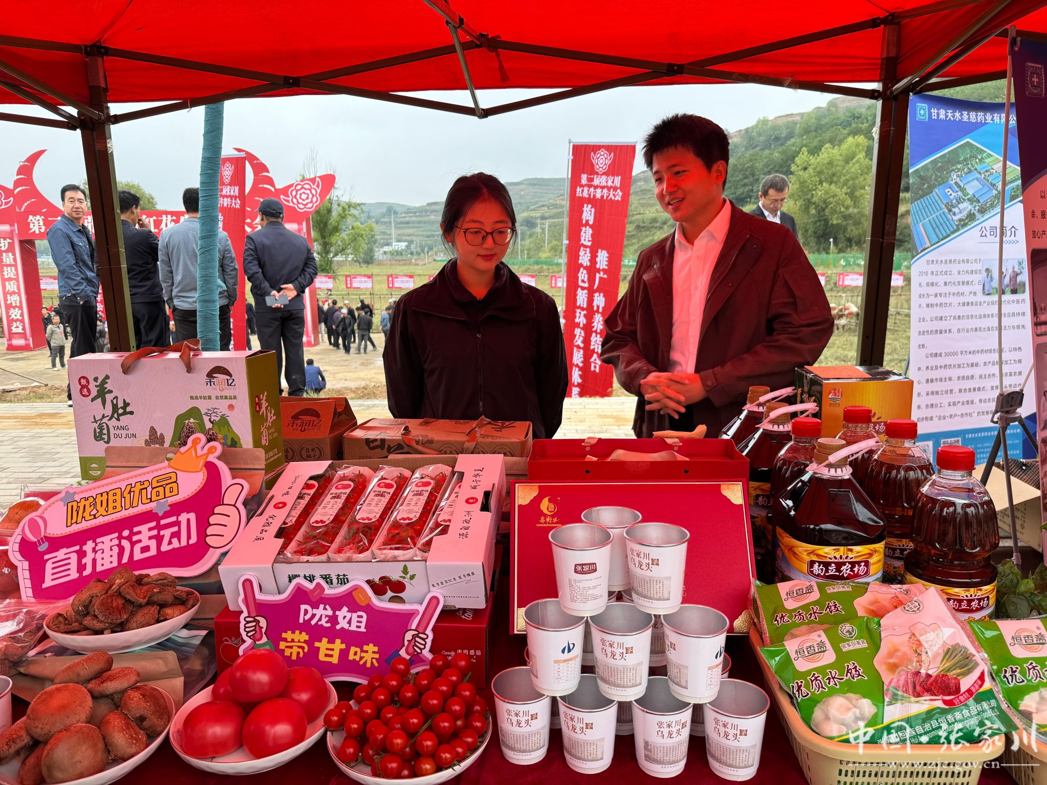 今年的展销活动还搭上了“直播快车”,“陇姐带甘味”直播团队走进现场,主播手持苹果、花椒等农产品,向网友详细介绍种植环境、生长周期和营养价值,还不时与评论区互动答疑。“家人们看过来,这是咱们张家川的高原苹果,日照足、糖分高,咬一口脆甜多汁!”随着主播的生动讲解,线上订单不断涌现,让张家川的“甘味”特产跨越地域限制,走向更广阔的市场。