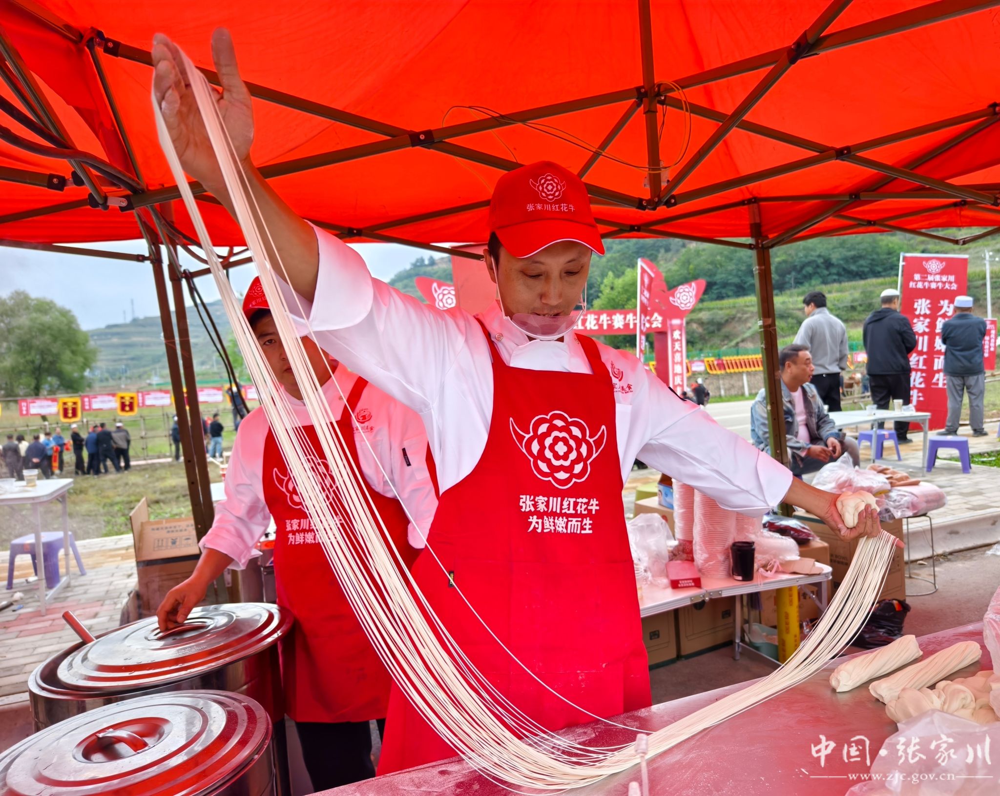 丰收的喜悦,既要用眼睛看,更要用舌尖尝。活动现场,“张家川·兰州牛肉拉面”和“张家川烧烤”品鉴推广活动人气爆棚,成为最受群众欢迎的“打卡点”。县餐投公司组织了县内多家知名餐饮企业参与,师傅们现场展示拉面技艺,面团在手中几经揉搓、拉伸,瞬间变成细如发丝的面条,下锅煮熟后,浇上浓郁的牛肉汤,撒上蒜苗、香菜,一碗碗热气腾腾的牛肉拉面香气扑鼻;另一边,烤串在炭火上滋滋作响,油脂滴落溅起火星,烤肉的焦香弥漫在空气中,让人垂涎欲滴。