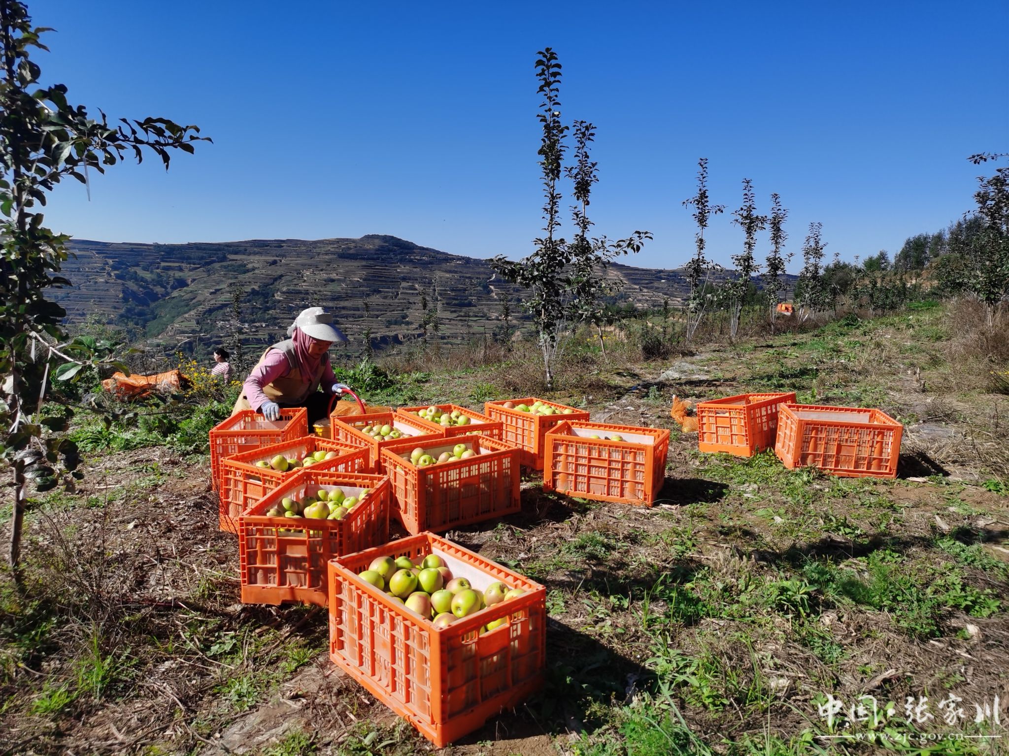 果园主人哈建峰一家三代,喜笑颜开地加入到采摘工人当中,分拣、装筐、搬运,一家人忙得不亦乐乎。