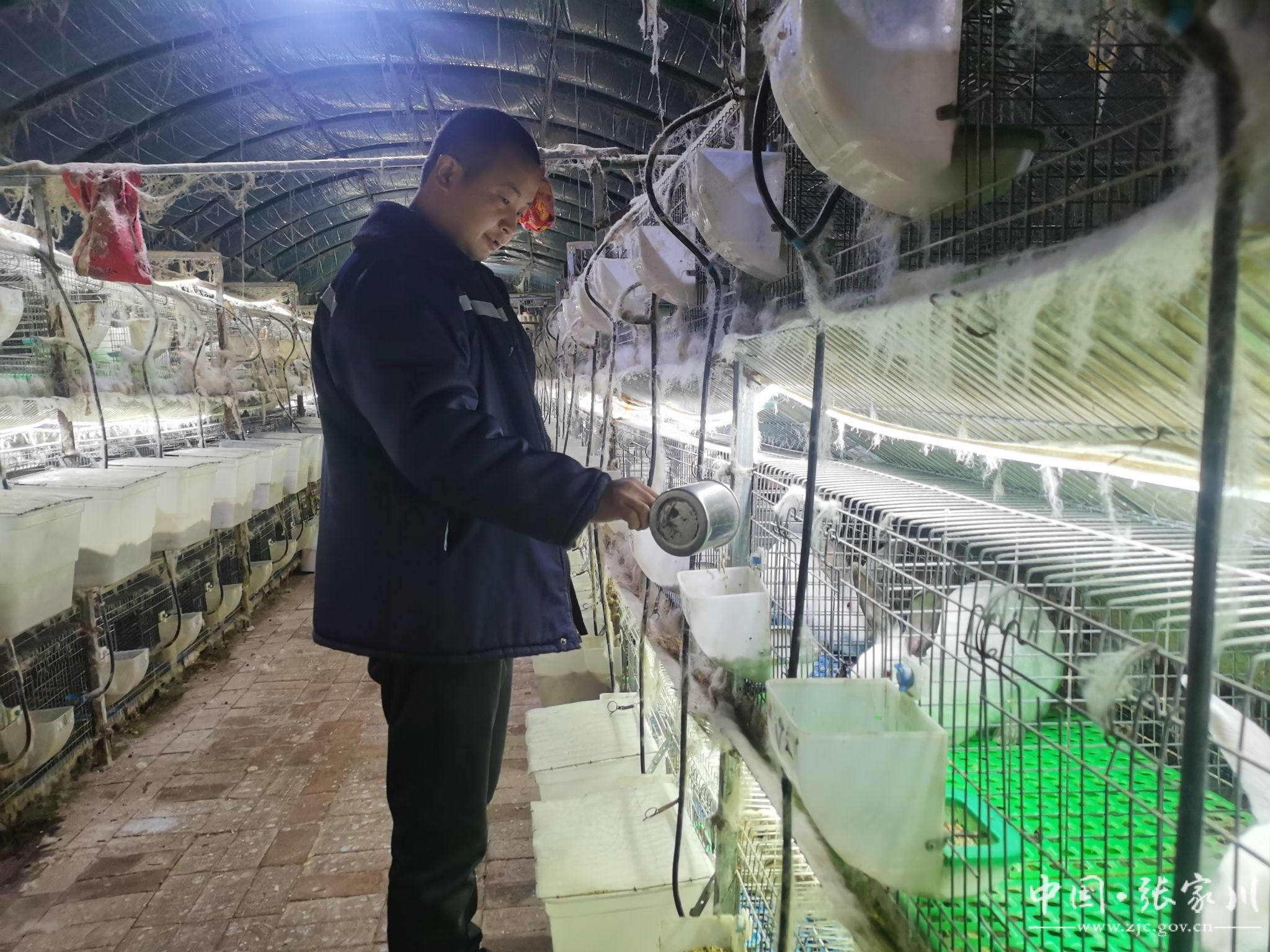 马夭村荣红肉兔养殖家庭农场内,3000余只伊拉肉兔毛发光亮,75天即可出栏的高效养殖模式让农场月出栏1000余只,负责人马荣荣计划继续扩大规模,带动乡亲共同致富。