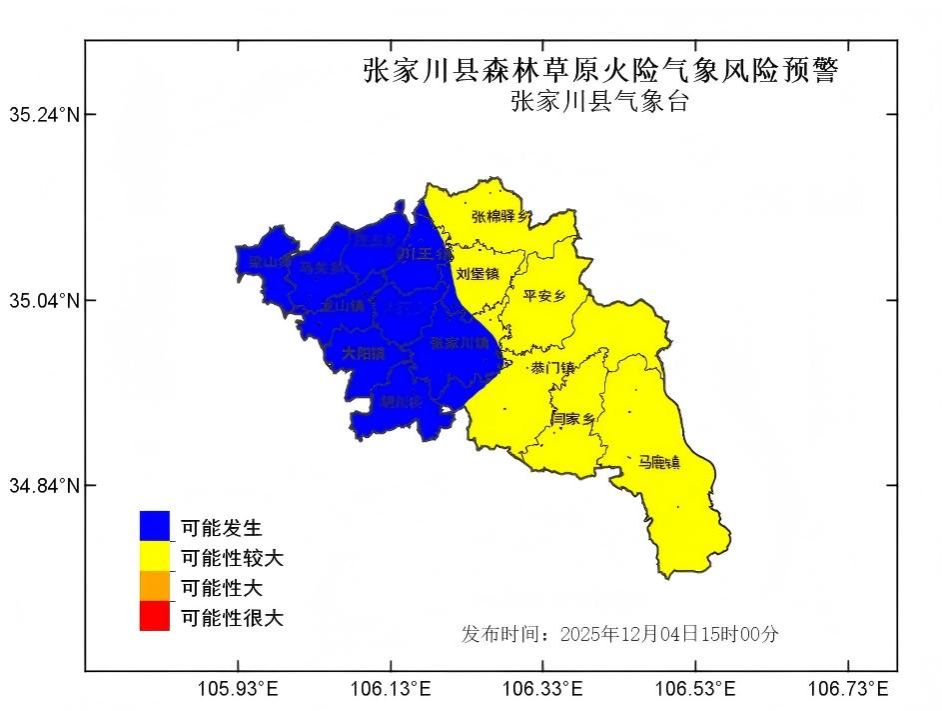 张家川县应急管理局、张家川县自然资源局、张家川县气象局联合发布森林草原火险黄色(Ш级)气象风险预警:自11月中旬以来,我县无有效降水,气温偏高,空气干燥,预计未来一周全县仍无明显降水。受此影响,未来一周我县森林草原火险气象风险较高,具体如下: