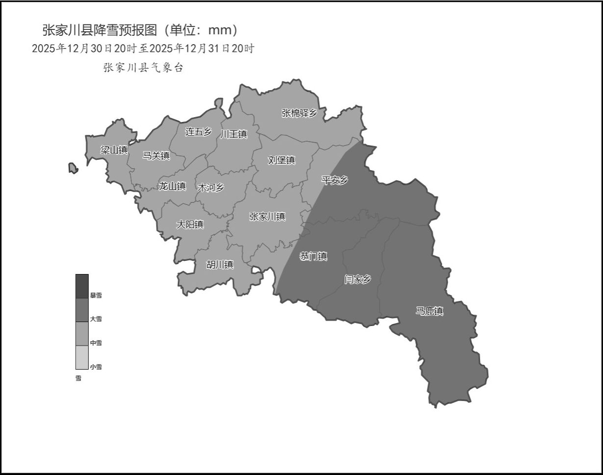 图1 张家川县2025年12月30日20时至31日20时降雪预报图
