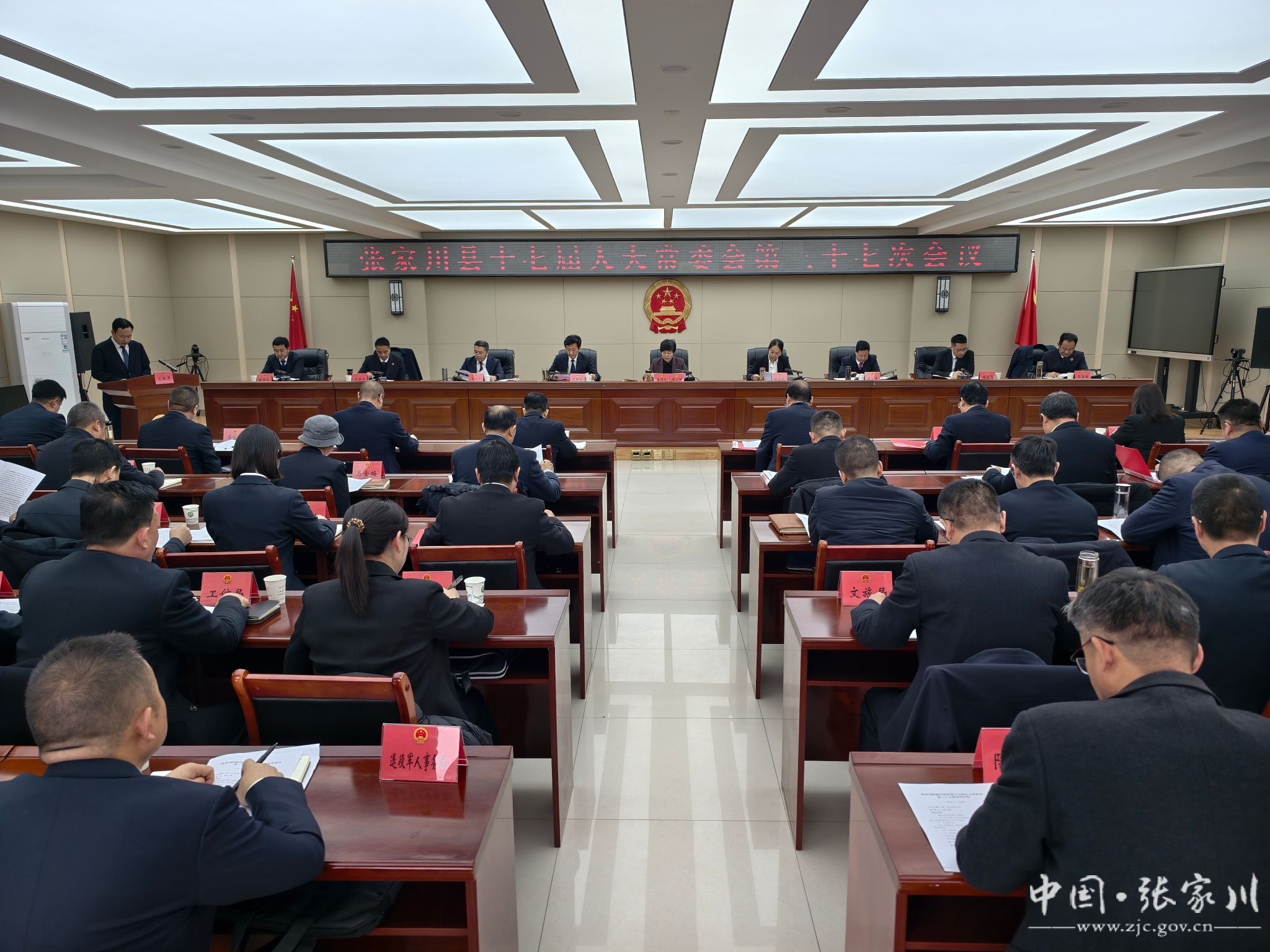 1月27日,张家川县第十七届人大常委会召开第三十七次会议。县人大常委会主任麻小梅主持第一、第二次全体会议,县人大常委会副主任赫金梅、王保林、陈金海、马建军出席会议。县人民政府副县长杨龙飞,县监委、县法院、县检察院、县政府办等政府组成部门负责人,县人大常委会各委办主任、副主任,县人大代表联络服务中心主任列席会议。