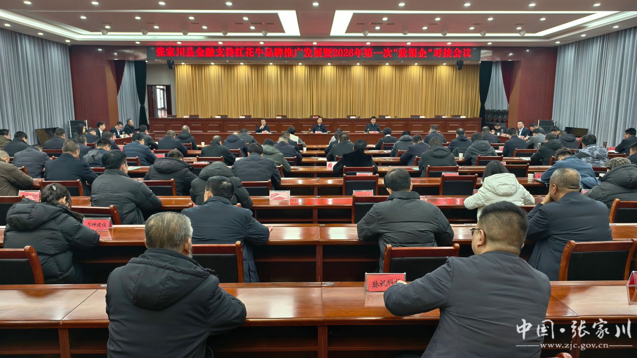2月3日,张家川县召开金融支持红花牛品牌推广发展暨2026年第一次“政银企”对接会议,深入贯彻落实全国金融系统工作会议精神和县委十四届十次全会暨县委经济工作会议精神,总结2025年全县金融工作,安排部署2026年金融重点任务。县领导刘润斌、王志杰、马永平出席会议。
