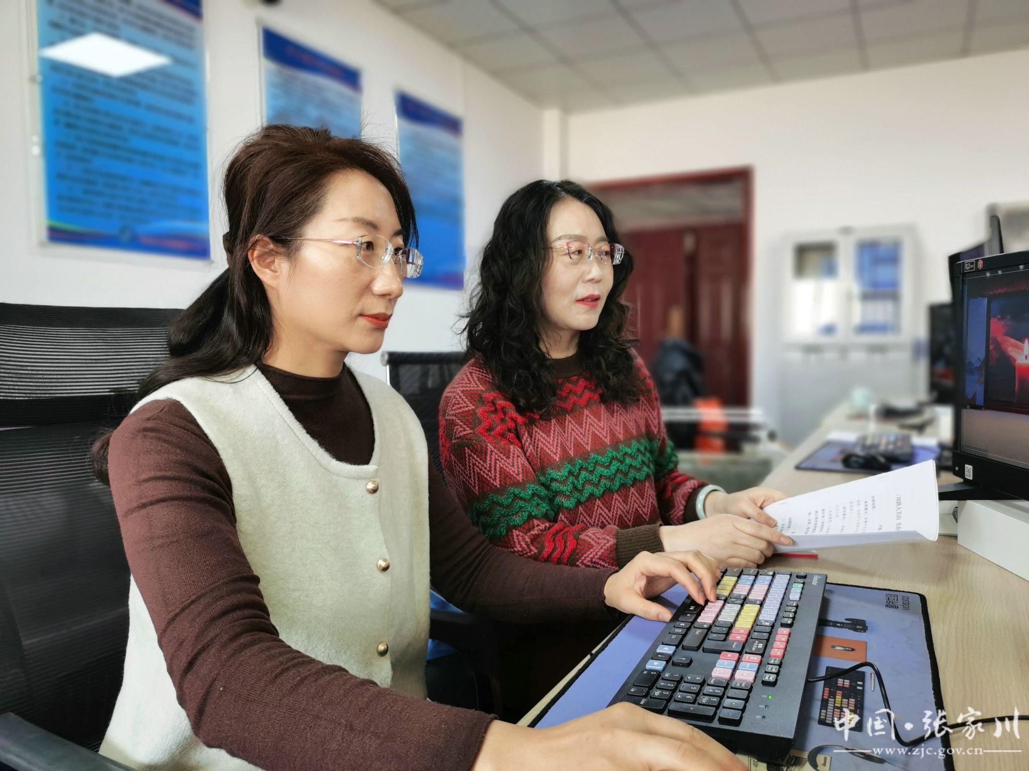 如果说一线记者是冲锋在前的“尖兵”,后方制作团队便是坚实可靠的“后盾”。当一线记者在外奔波,张家川县融媒体中心的演播室、编辑部、制作室里,灯光通明,每一位幕后工作者都在岗位上默默坚守。