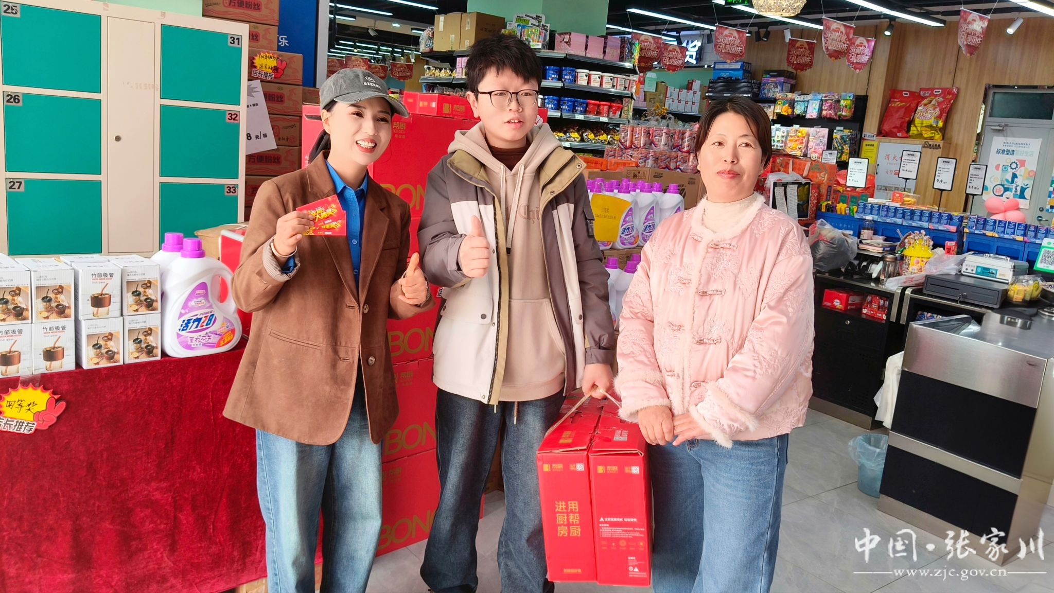 各大商家抢抓新春消费旺季,密集推出惠民让利促销活动,持续点燃群众消费热情。麦蒙超市于2月8日至2月23日开展为期十五天的春节促消费活动,设置消费满58元抽奖环节,奖品涵盖电动车、电锅、洗衣液、米面粮油、粉条等实用好物,优惠力度大、互动性强,吸引众多市民到场采购。顾客高平霞高兴地说:“买了一百多元商品,抽中两个二等奖,领到两口电锅,既实惠又幸运,真切感受到了春节的喜悦和商家的诚意。”