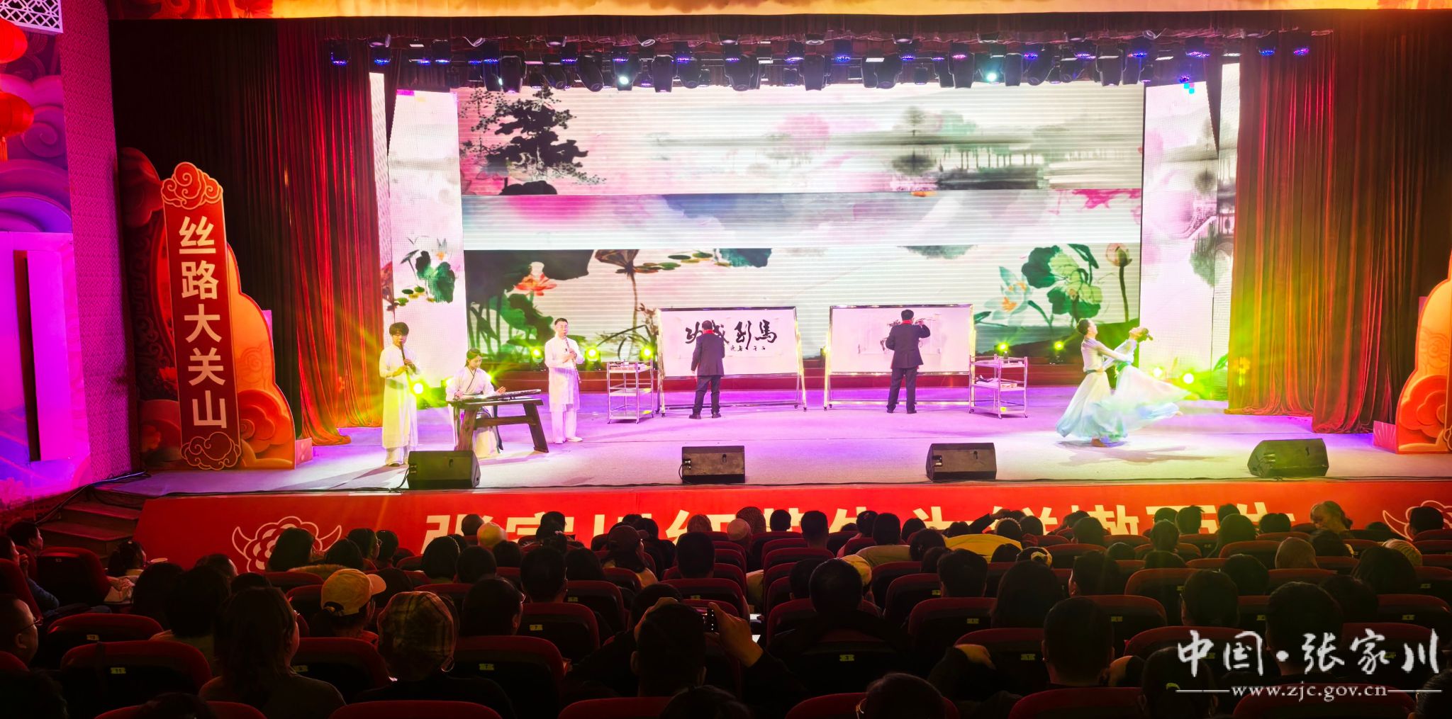 歌伴舞《携手远方》深情讴歌了东西部协作帮扶带来的巨大变化,唱出了张家川儿女感恩奋进、携手前行的心声;相声《出口成“张”》以幽默诙谐的语言,讲述了家乡的发展故事,引得现场笑声不断;舞蹈《春之梦》则用优美的肢体语言,展现了春天的希望与活力;花儿表演唱《漫起花儿心欢畅》将国家级非物质文化遗产“张家川花儿”的独特魅力演绎得淋漓尽致,让观众感受到了浓郁的民族风情;音舞书画节目中,书法、绘画与器乐、舞蹈巧妙融合,尽显传统文化之美;原创歌曲《云朵上的张家川》以悠扬的旋律,抒发了对家乡的无限热爱。