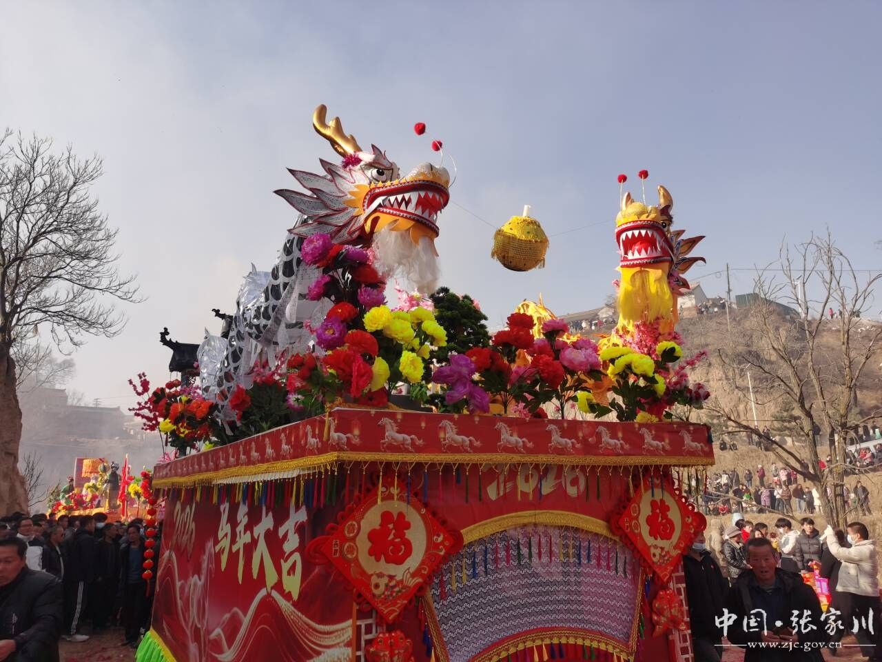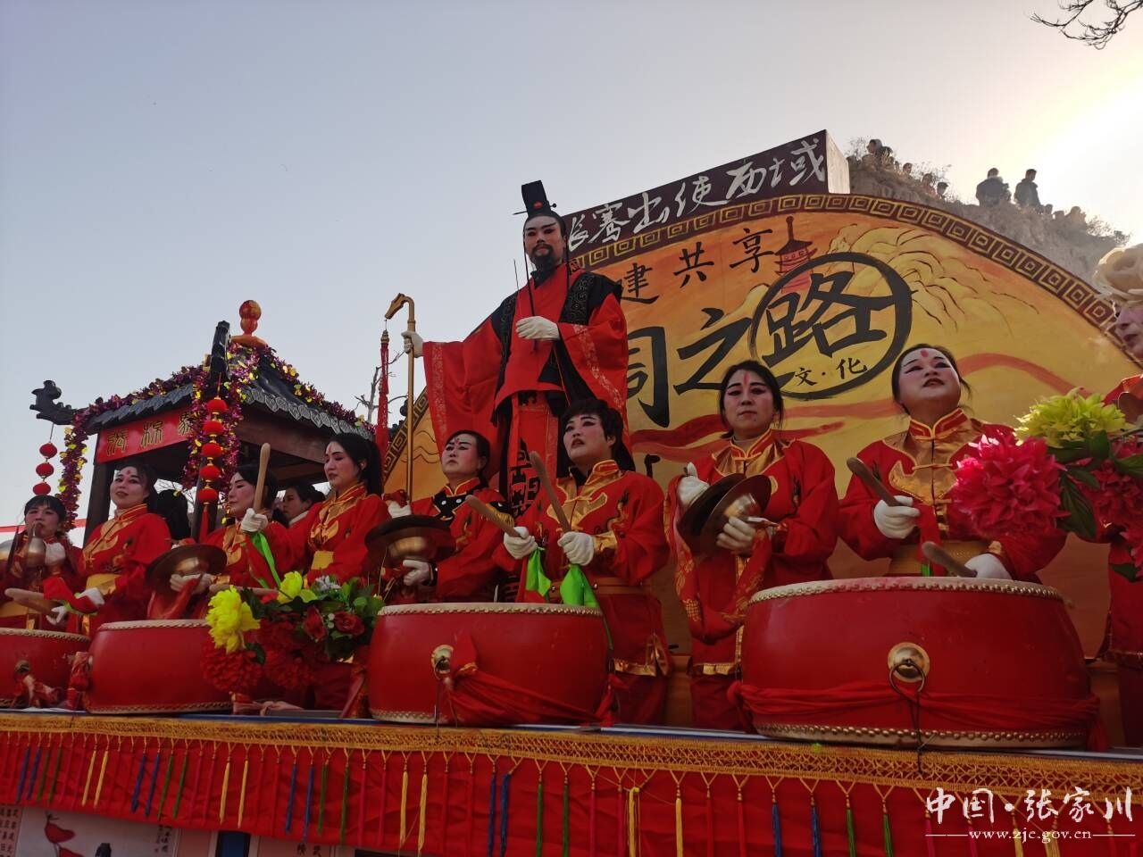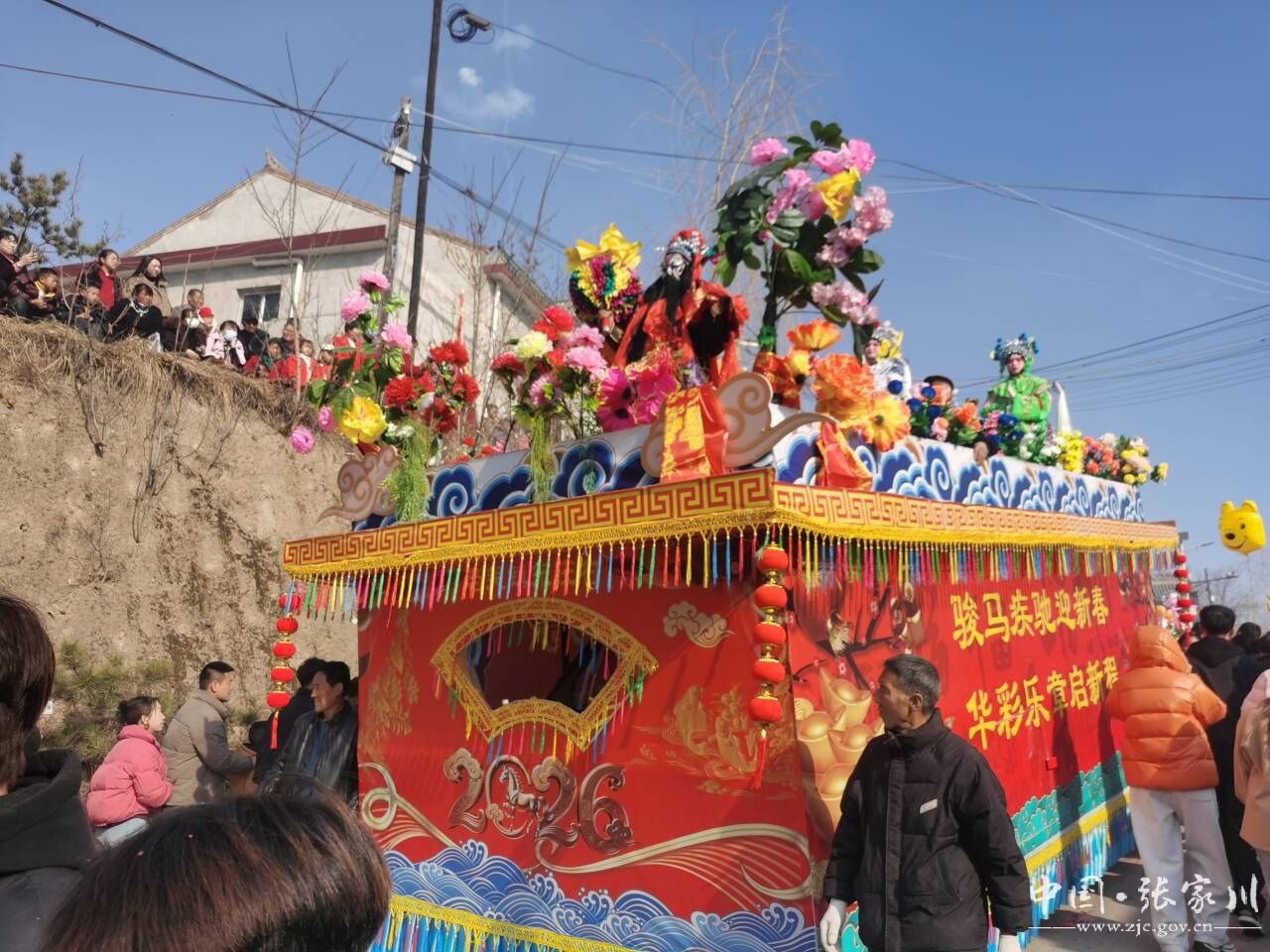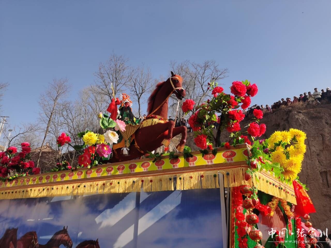 巡游队伍里,以马为主题的社火最为吸睛。《关春秋》《出五关》等经典造型精巧逼真,艺人扮相传神、身姿稳健,将传统故事与民间技艺完美融合;舞龙舞狮翻腾跳跃,气势如虹;高跷、旱船、秧歌轮番上阵,步伐灵动、趣味盎然;来自张棉驿乡政府的社火彩车《张骞出使西域》成为本次社火亮点,以张骞出使西域经过张棉驿为主题,再现关陇古道节点张家川的昔日辉煌。社火队伍所到之处,人头攒动、掌声不断,大人孩童驻足拍照,欢声笑语汇成一片欢乐海洋。