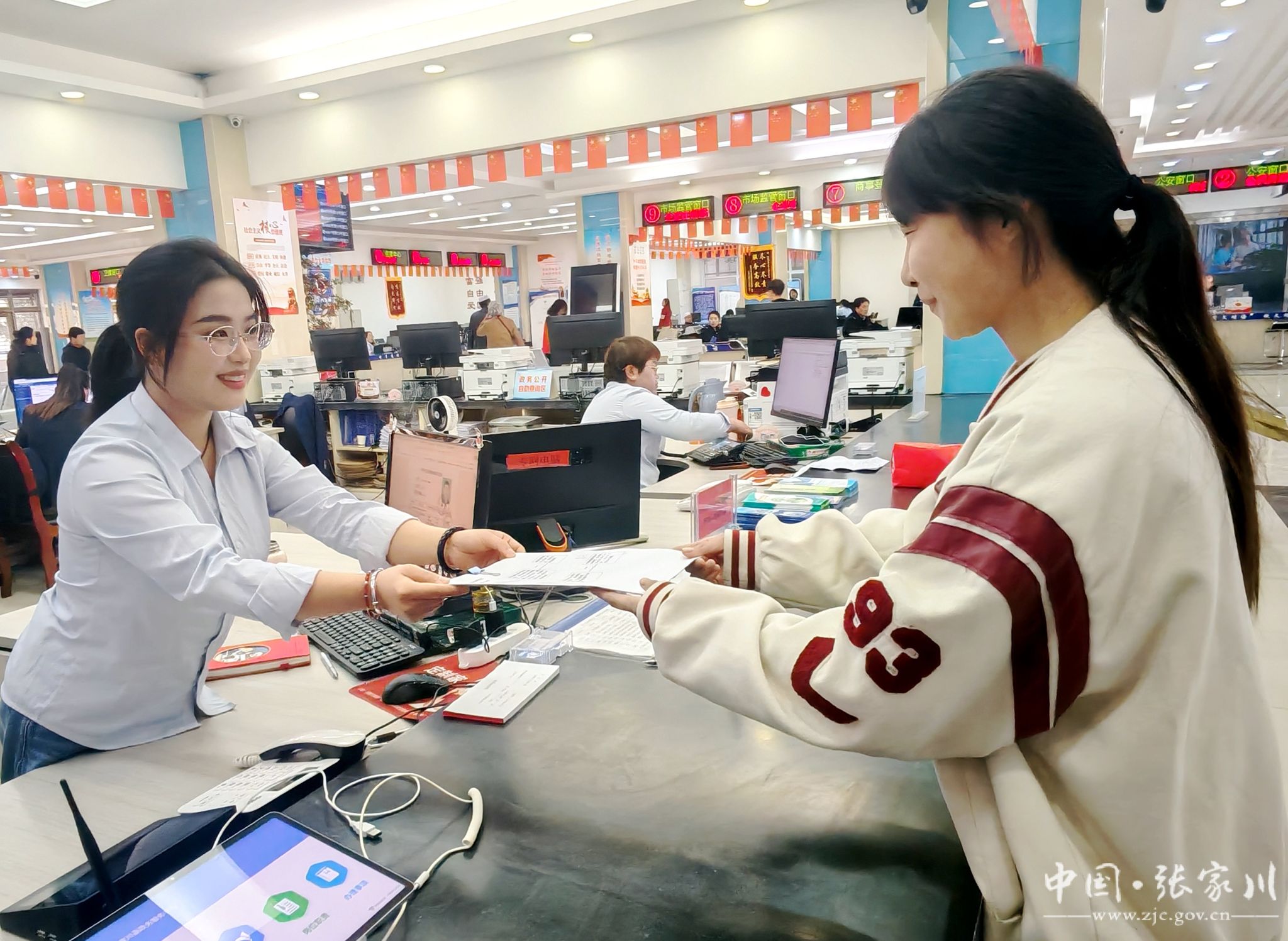 在县便民服务大厅,各个窗口前群众络绎不绝、秩序井然,工作人员热情饱满、服务周到,政务服务一线呈现出忙碌而有序的火热景象。
