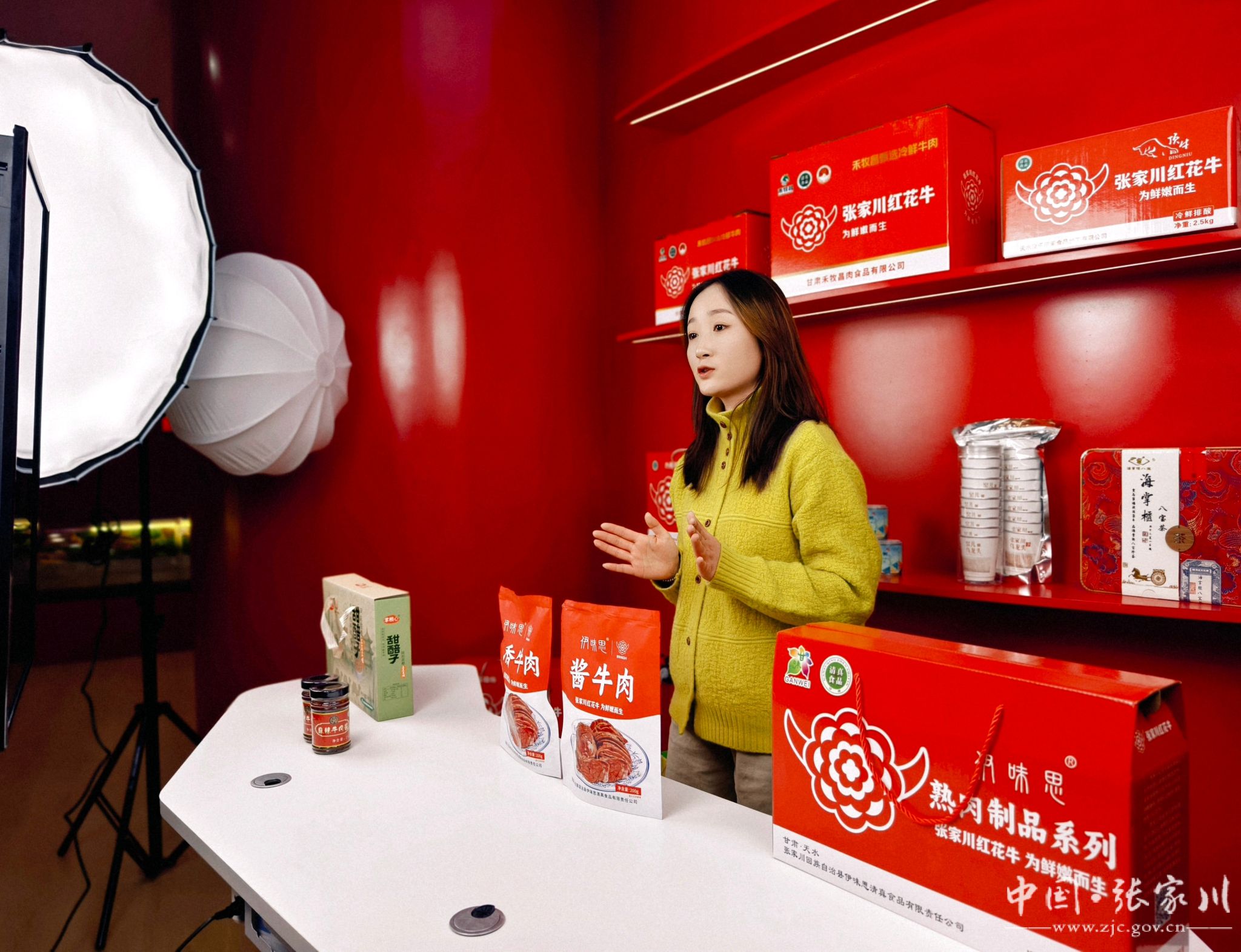 尤为引人注目的是,营销中心内专门设立了电商直播区。本地主播正通过抖音“张家川农特荟”等平台,向全国网友热情推介家乡美味。这种“线下展示+线上直播”的双轮驱动模式,打破了地域限制,让千里之外的消费者也能直观感受张家川红花牛的品质。