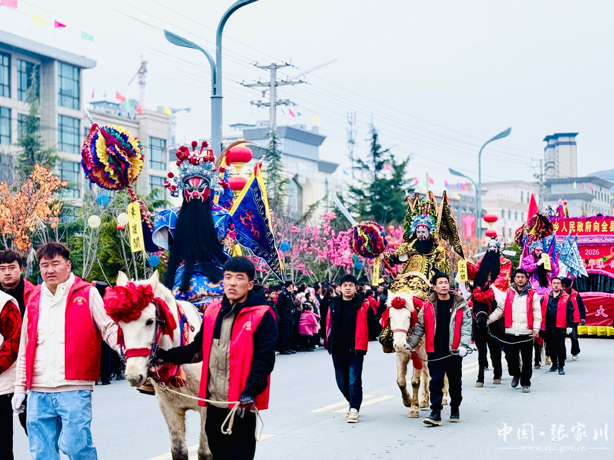 3月2日(农历正月十四),张家川县2026年民俗社火展演盛装启幕。锣鼓铿锵、彩车巡游,舞龙舞狮、高跷秧歌、传统扮相等节目轮番登场,尽显非遗魅力与民俗风情。