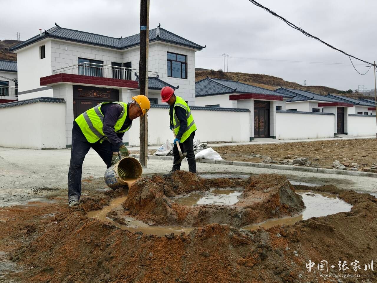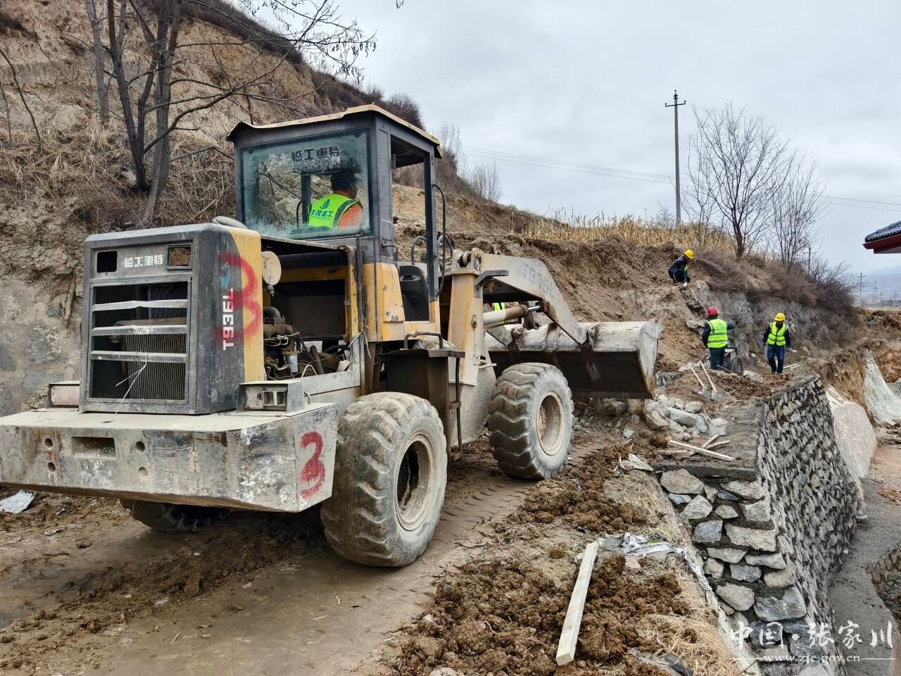 日前,记者在张家川县闫家乡陈庙村生态及地质灾害避险搬迁集中安置点基础设施建设工程(三期)现场看到,施工车辆来回穿梭,工人师傅们头戴安全帽挥汗如雨赶工程进度,他们浇筑砌筑防护挡墙,稳固坡体。