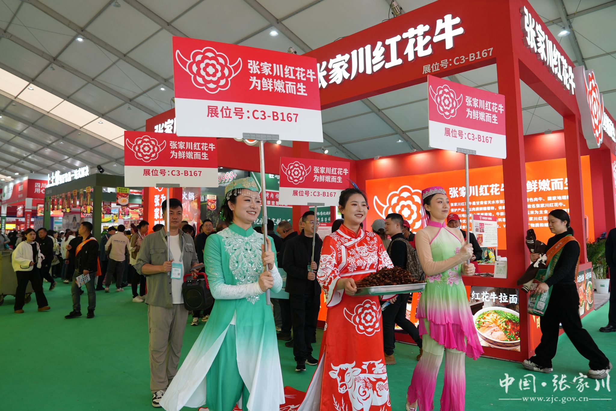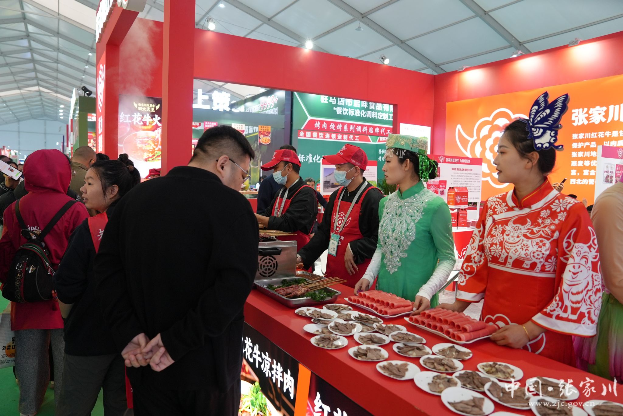 本次展会,张家川县组织6家企业集中亮相,以烧烤、火锅、拉面、熟牛腱等多元形式,全方位展示红花牛品质。4天时间里,从张家川带来的880斤生鲜牛肉,送出6500串牛肉串,供应8000碗牛肉面,所有展品全部品鉴一空。