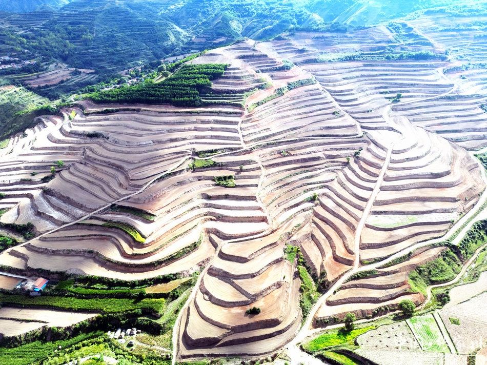 放眼望去,连片平整的土地向着远处层层延伸,宽敞便利的机耕路蜿蜒其中,一块块标准化梯田呈现出优美“指纹”,现代化农业发展前景已然在望。
