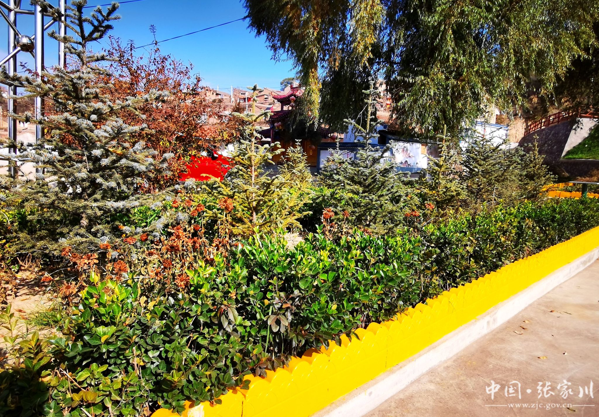 虽然是立冬时节,但走进梁山镇阳洼村的文化广场,松柏、冬青等草木依然翠绿,与周围的文化墙共同构筑起一道靓丽的景致。