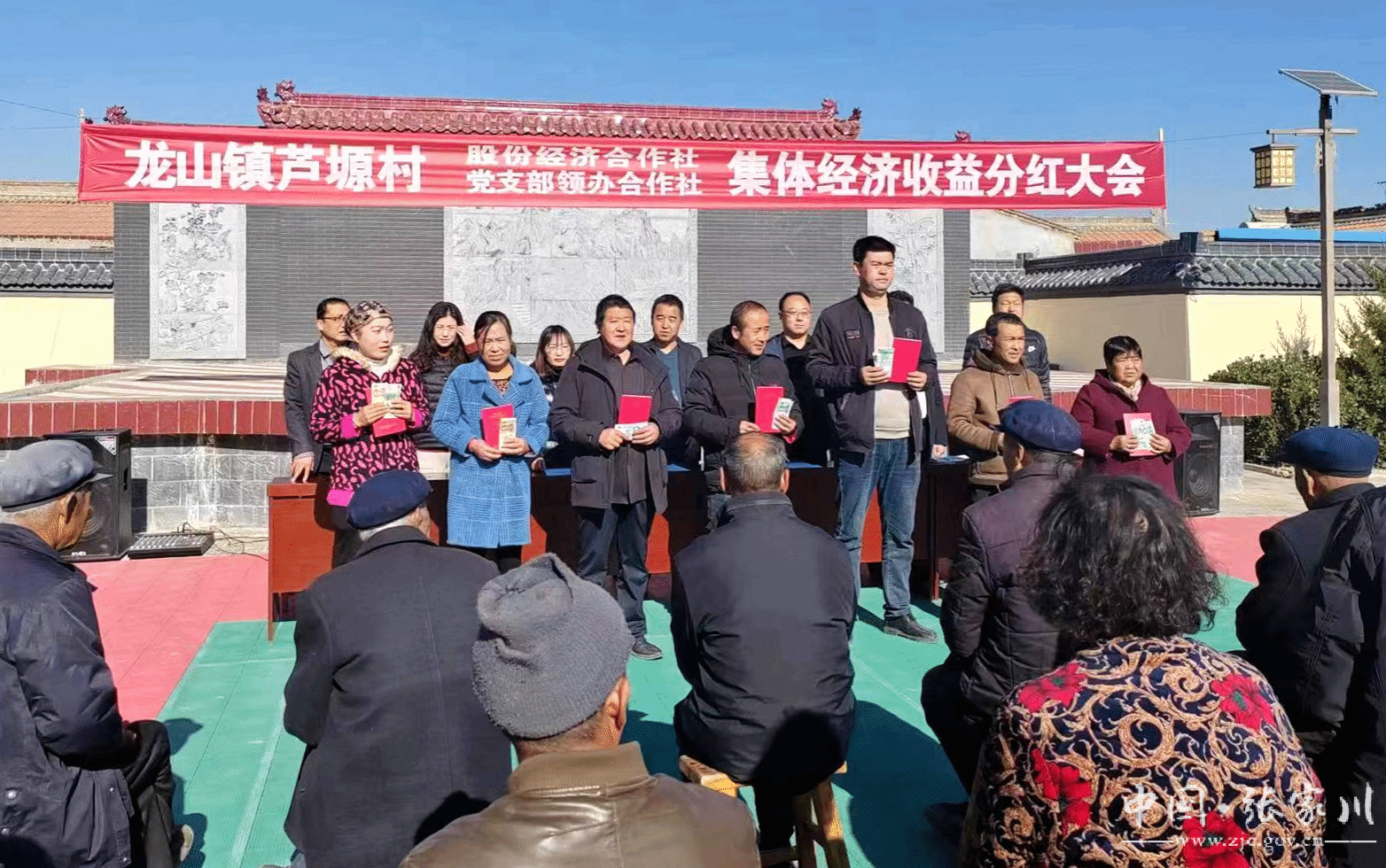 近日,张家川县龙山镇芦塬村群众迎来了村党支部领办的合作社集体经济收益分红,参会分红大会的群众喜笑颜开,大家共同分享着村集体经济发展带来的丰硕成果。