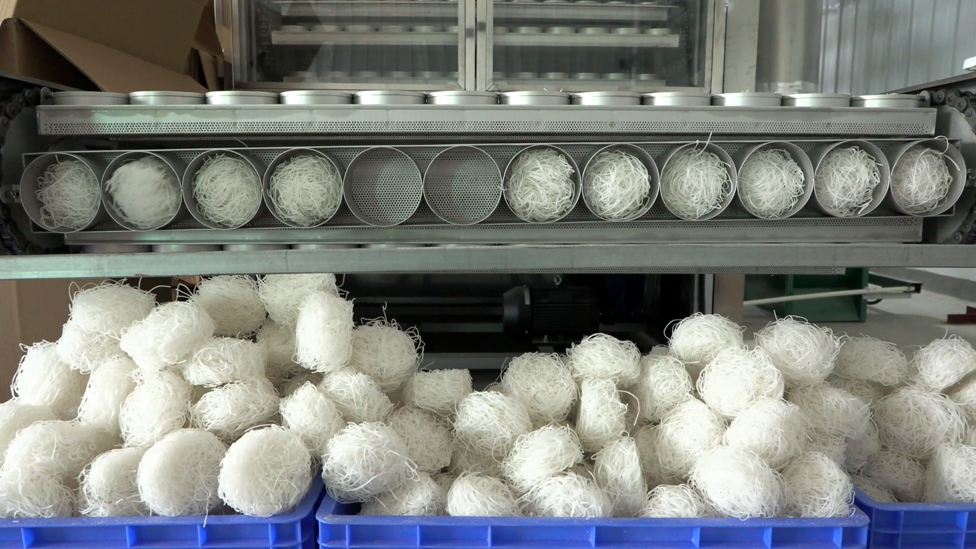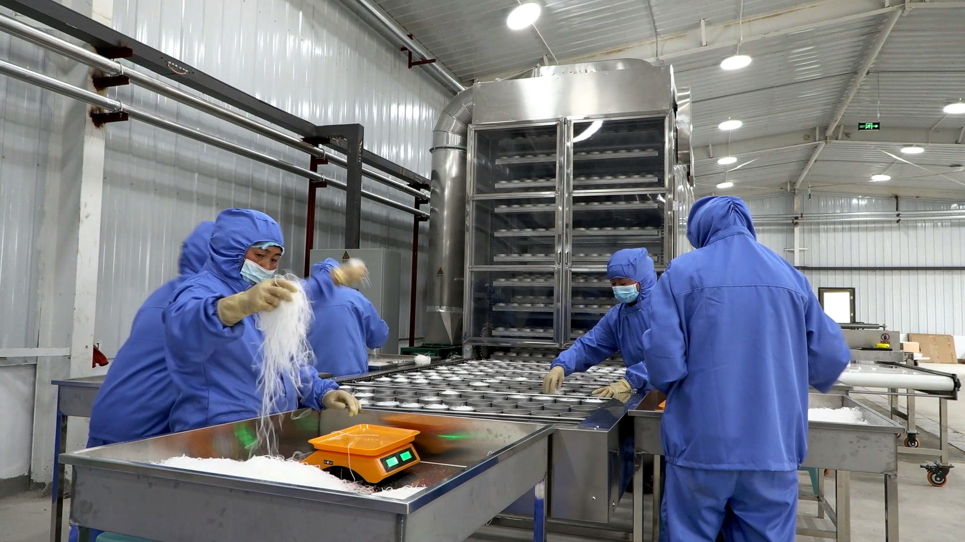 走进羊阿洋食品科技有限公司,车间内一派繁忙景象,工人们全副武装,有条不紊地进行流水线作业。新建的厂房里全自动粉丝生产设备和包装设备一应俱全。调配好的马铃薯淀粉液体通过大型设备的管道进入生产流程,蒸箱蒸熟、切丝、装箱,人工分拣称重装入烘干机、湿粉烘干,粉丝饼打包、流水线装盒、塑封,包装等十几套工序,一桶桶酸辣粉装箱进入销售,经过精准高效运转,保障市场需求。