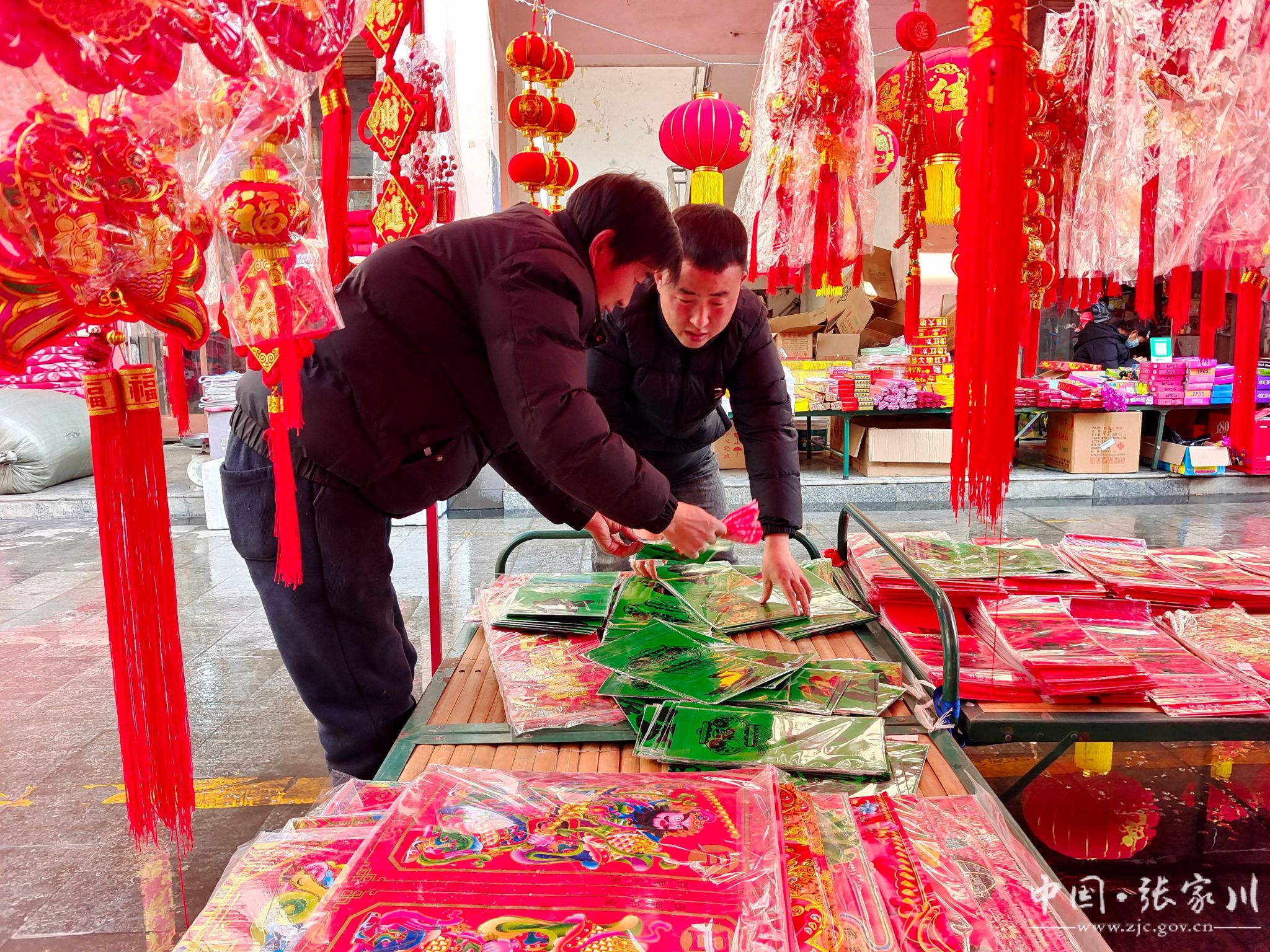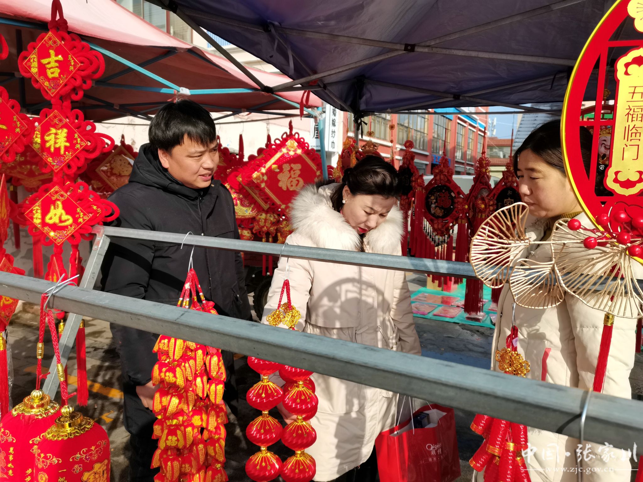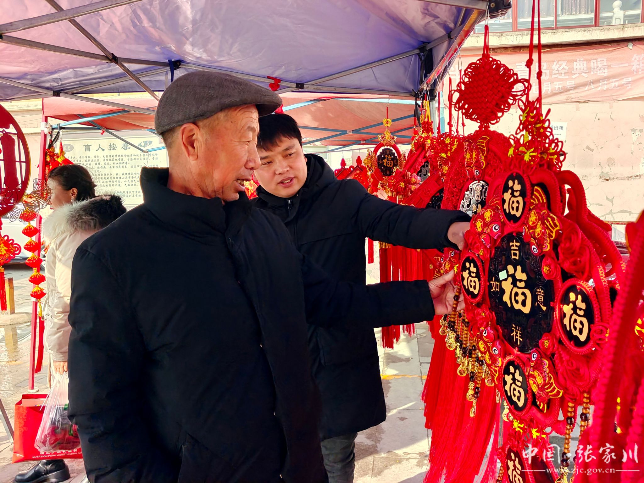 “春节越来越近了,逛年集的人也多了,买年画、中国结挂件、窗花、灯笼的人特别多,欢迎广大市民来商贸城购买满意的年货。提前祝大家新春快乐!万事如意!”商贸城年货摊摊主范冠军说道。