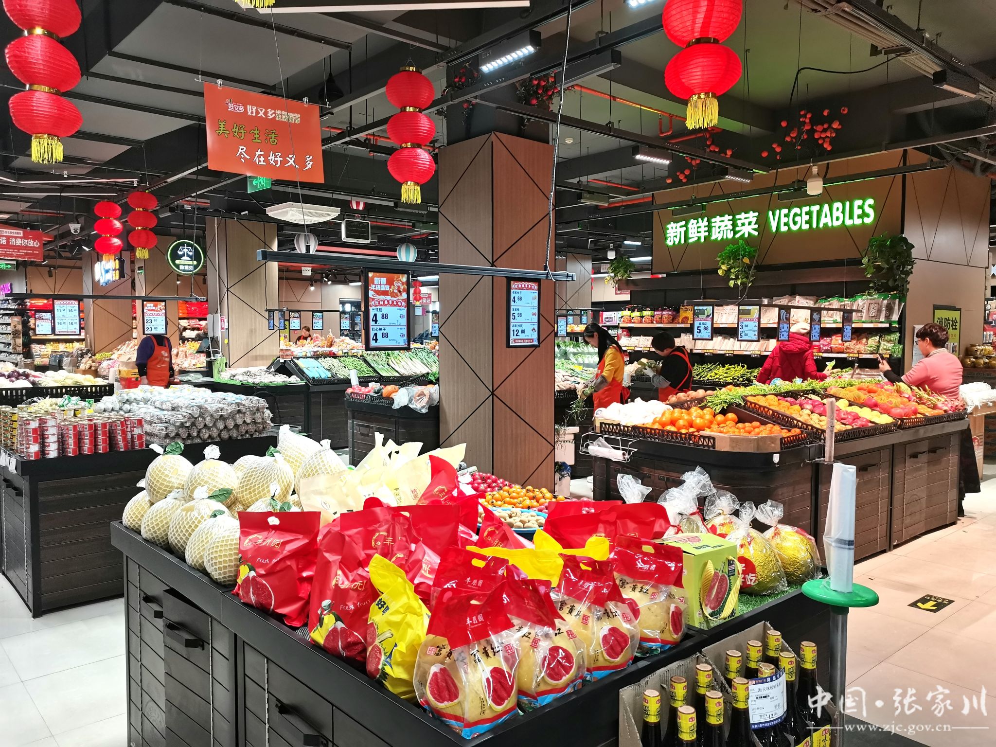 据了解,为了迎接春节,商家们提前准备好了充足的货源,生鲜果蔬、米面粮油、饮料酒水等备货齐全,供应充足,最大限度满足群众的采购需求。