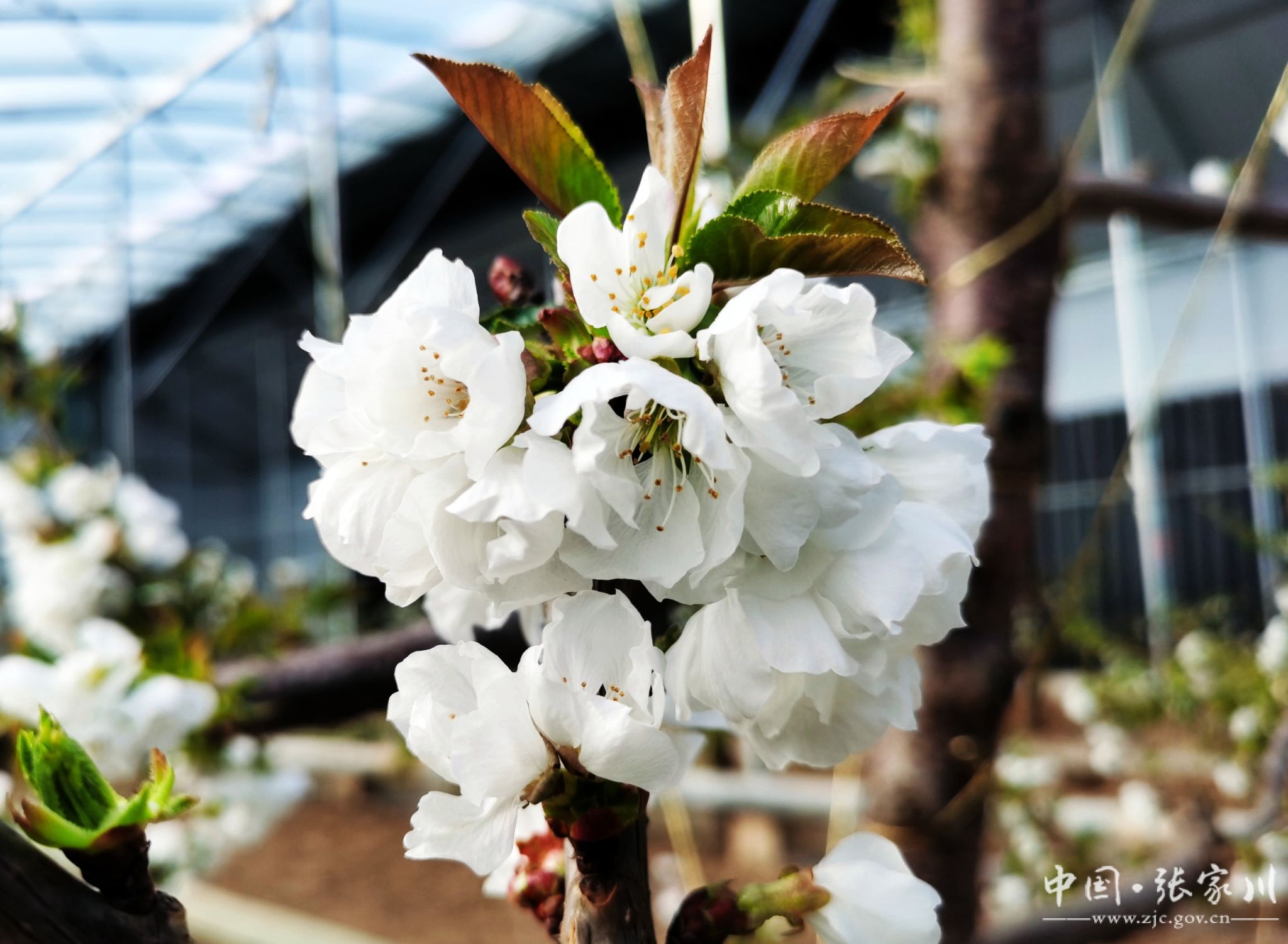 寒冬腊月,草木皆“冰”,但在张家川县现代果业产业园温室大棚里,被誉为“春来第一果”的大樱桃正花满枝头吐露芬芳,交织出满园春色。
