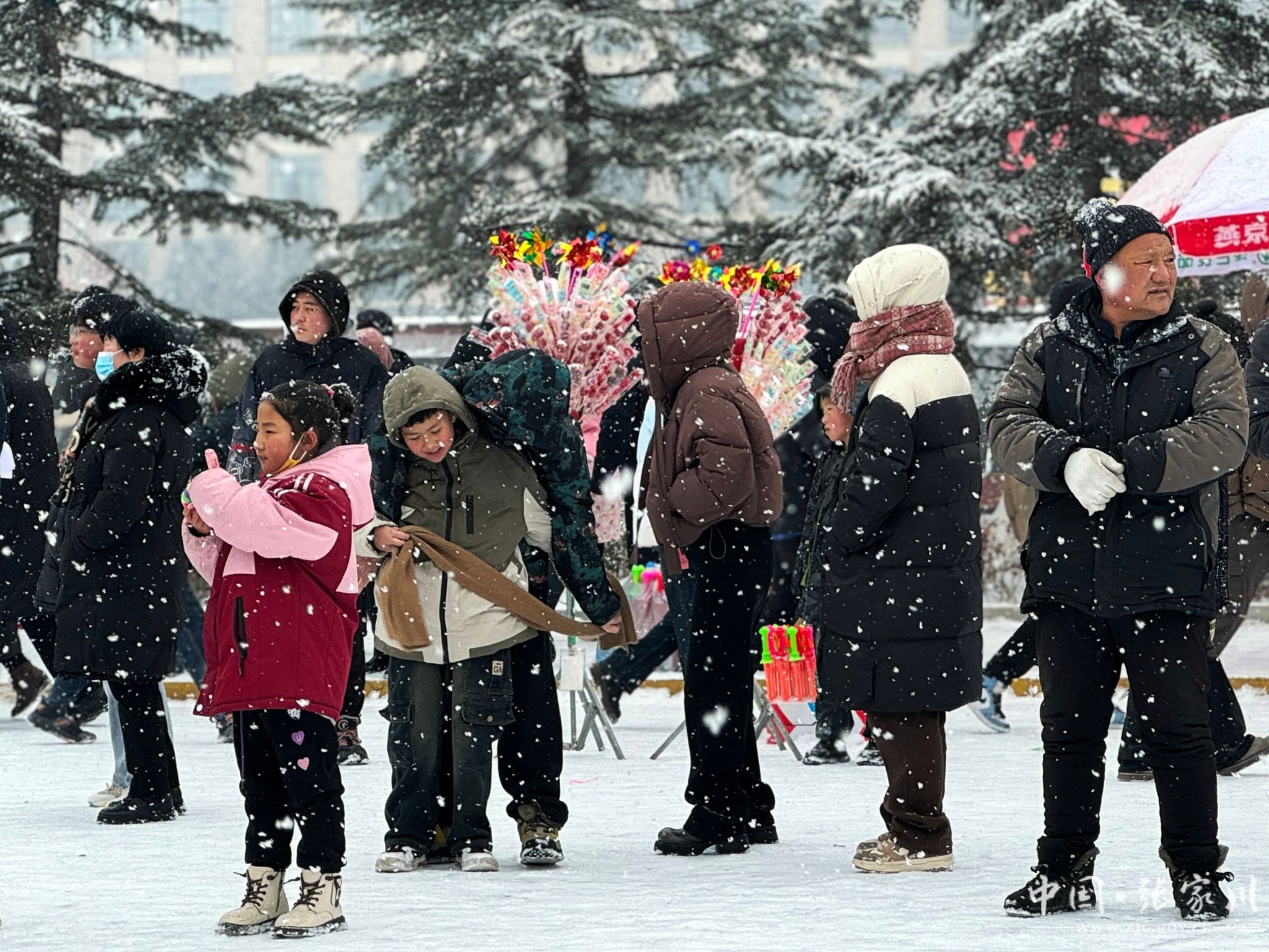 大雪纷飞抵不住人们的热情!观众们纷纷涌向广场,男女老少齐聚一堂,孩子们手舞足蹈,欢笑声此起彼伏;大人们则拿出手机,记录下这难忘的瞬间。空气中弥漫着喜庆与祥和的气息,每个人都被深深地感染着。