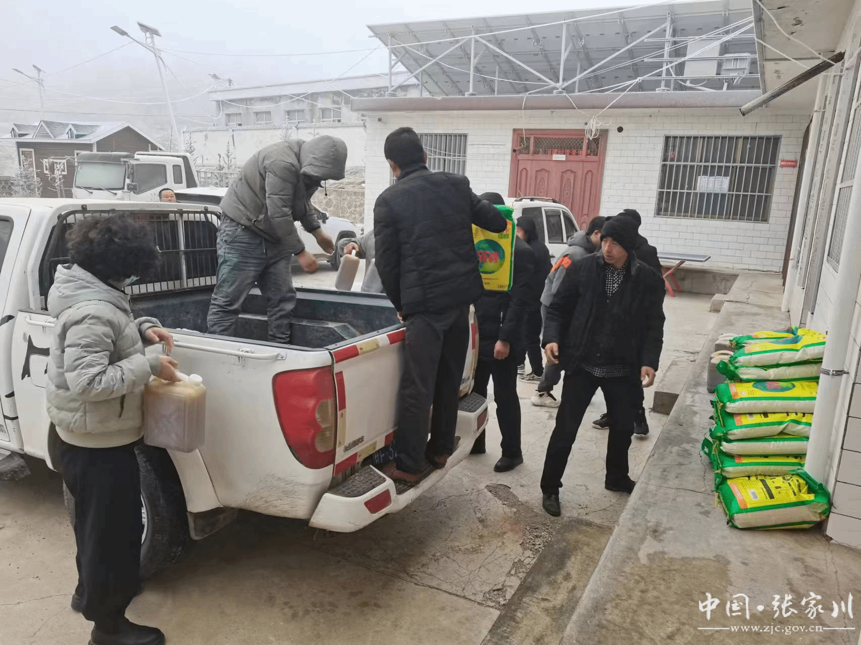闫家乡草川梁村帮扶单位天水市农业银行党委委员、纪委书记滕国栋一行人来到草川梁村,带来大米和食用油等生活物资,入户走访慰问困难群众。操场村帮扶单位张家川县纪委筹措资金,在县盐业公司购置食盐等生活物资,在村上为群众发放。