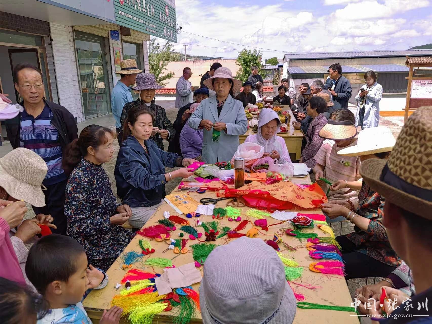 手工编制庆佳节。组织手工艺人与幸福院的老人们一起动手制作香囊,编制彩绳。伴随着付川小曲的演奏,一小会功夫,一条条穗子,一块块绸缎在大家的手中变成色彩斑斓、小巧玲珑的荷包。大家看着自己的作品脸上挂满洋溢的笑容,清幽的香气弥漫开来,为端午佳节增添一份浓浓的喜气,整个现场其乐融融,不亦乐乎。