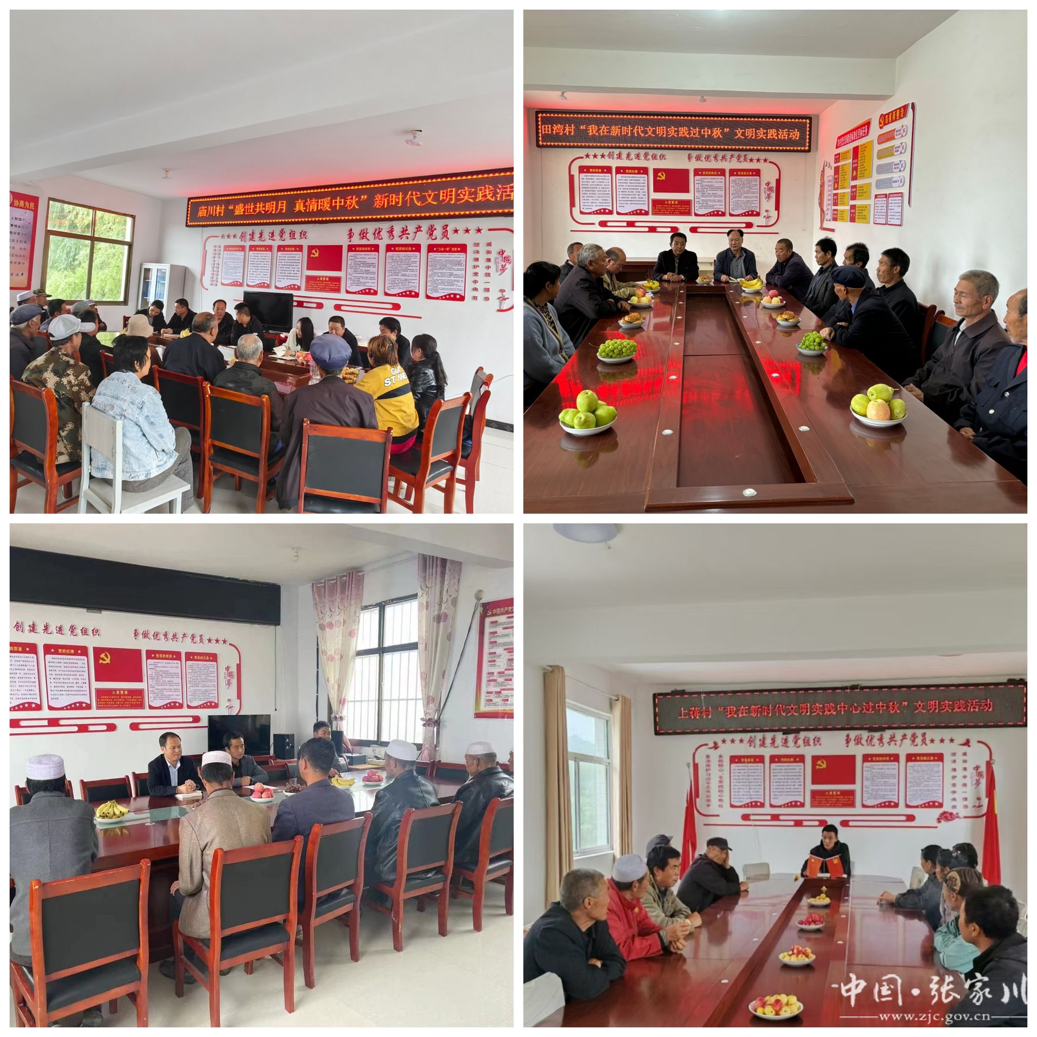 宣传理论政策,倡导移风易俗。各村以新时代文明实践站为依托,以“我们的节日·中秋”系列文化活动为载体,组织志愿者用通俗易懂的语言向群众宣传党的二十届三中全会精神,宣讲铸牢中华民族共同体意识,讲解移风易俗相关政策,宣读《共建网络文明倡议书》《公民道德宣传日》,引导群众要不断铸牢中华民族共同体意识,树立社会主义核心价值观,倡导文明生活践行移风易俗。
