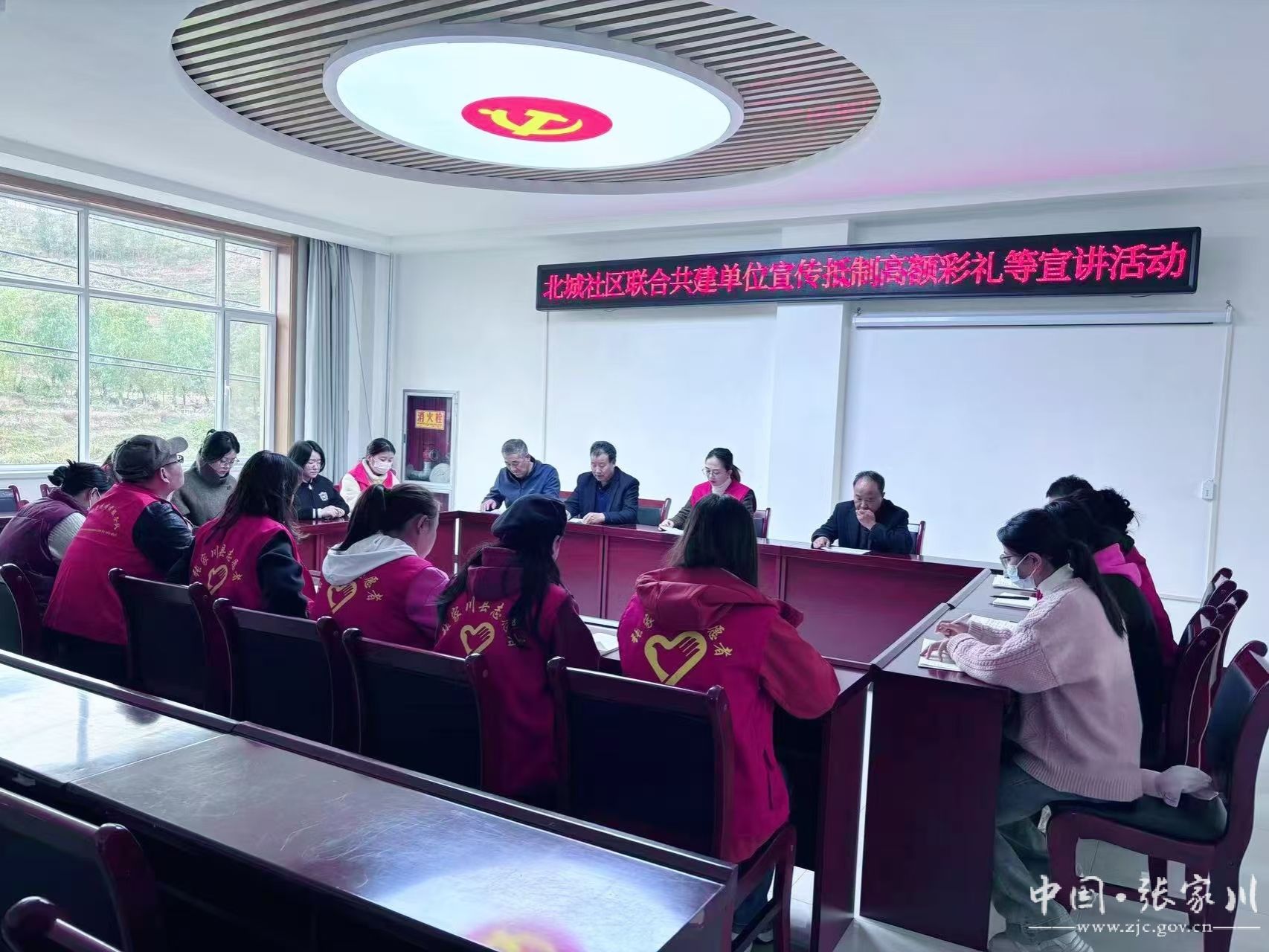 为积极培育和践行社会主义核心价值观,引导广大干部群众树立正确的婚嫁观念,破除高额彩礼、铺张浪费等陈规陋习,近日,张家川镇社区组织开展“抵制高额彩礼,倡导文明婚俗”文明实践活动,宣传和倡导新时代婚俗新风,营造文明节俭办婚事的良好社会氛围。