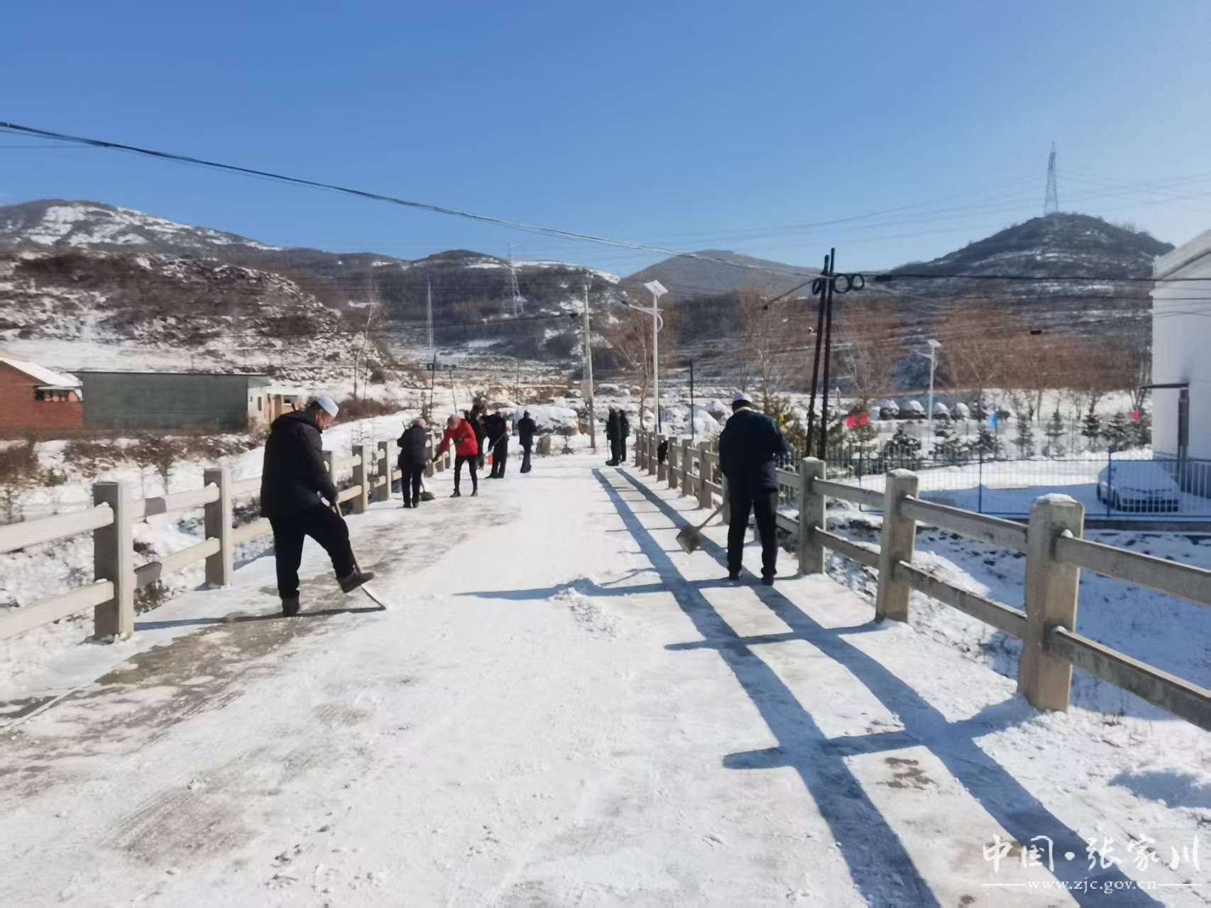 清雪除冰保畅通。由乡村两级党员干部带头,公益性岗位人员、志愿者和广大群众全员参与开展清雪除冰工作。大家利用铁锹、扫帚等工具,对主干道、公路沿线急转弯、陡坡,特别是背阴面出现的暗冰等重要区域进行全面清雪除冰,为行人和车辆打通了“出行安全通道”,防止了道路交通安全事故发生,全力保障了群众出行与正常生活秩序。