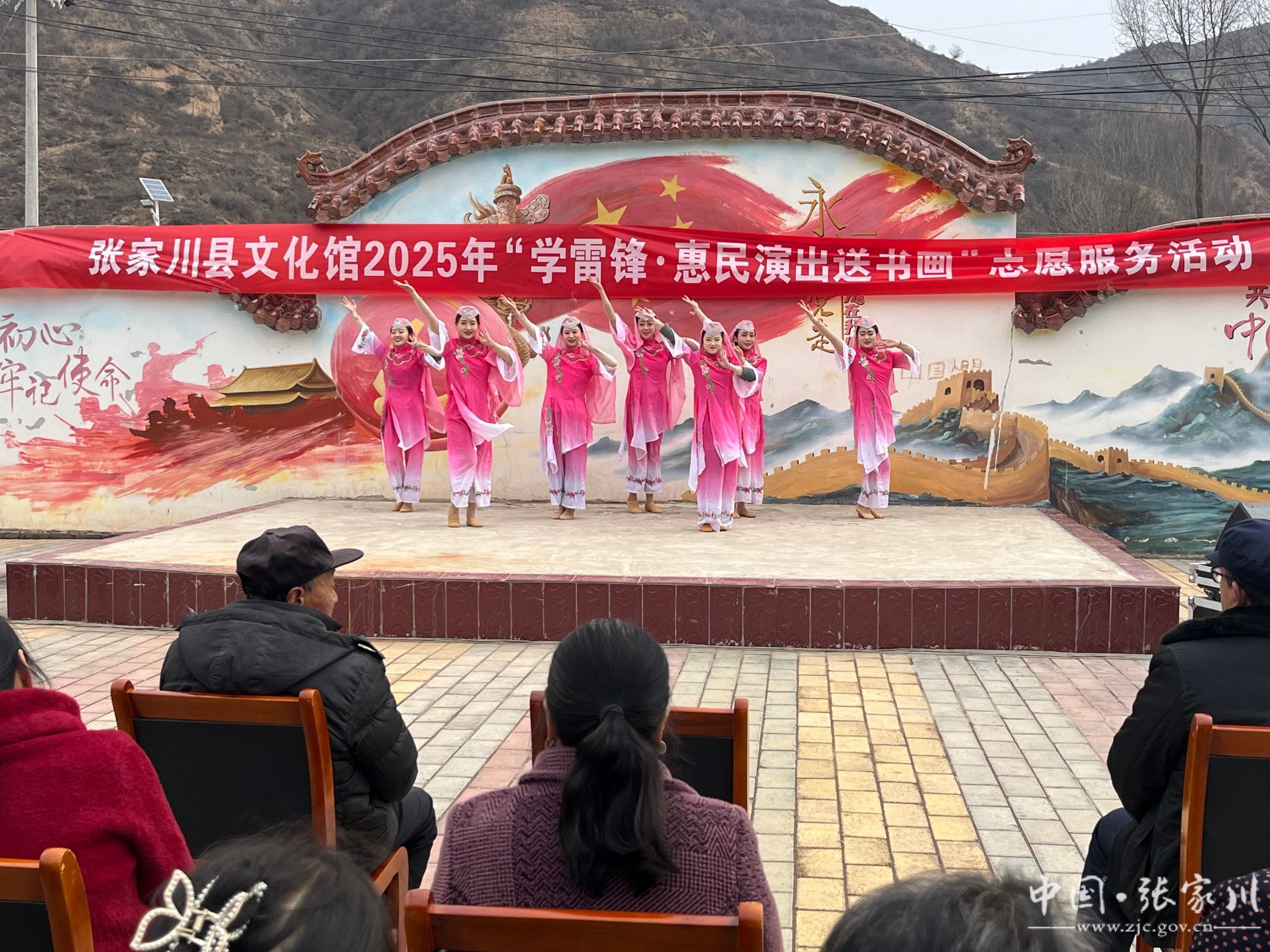 上午11时,闫家乡付堡村、后山村广场上热闹非凡。精彩的文艺演出在乡政府干部集体舞蹈《心上的张家川》中拉开帷幕,随后,县文化馆组织的经典歌曲、秦腔选段、民族舞蹈等节目轮番登场,赢得现场群众阵阵掌声。与此同时,文化馆的书画艺术家们挥毫泼墨,以雷锋形象、家风家训、乡村振兴为主题创作书画作品,并向村民赠送了百余幅寓意吉祥的书画,将文化惠民落到实处。