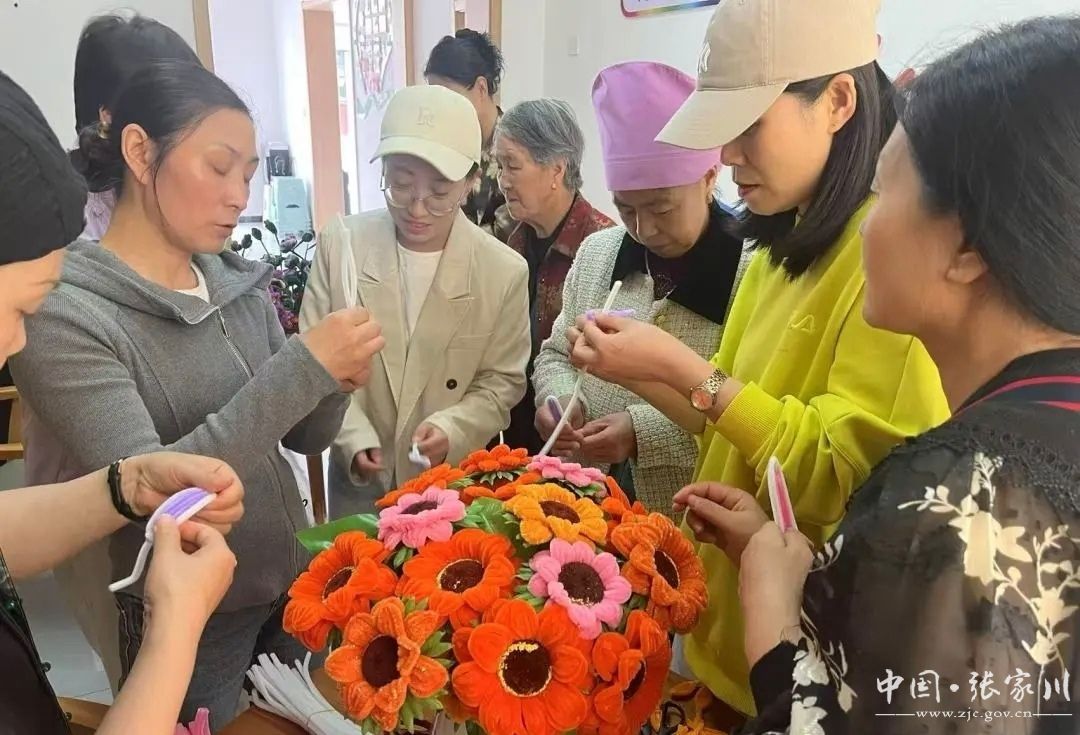 巧手编织,情暖邻里。一楼活动区,毛绒手工花制作现场热闹非凡。中城社区邀请手工达人教学,各族居民围坐学习编织中国结、花束等传统手工艺品。回族李女士展示花束编织技巧,汉族王女士分享中国结吉祥寓意。不同民族的编织技艺在交流中融合,绒线翻飞间,“团结之花”绚丽绽放,手工制作成为联结各族群众心灵的桥梁。