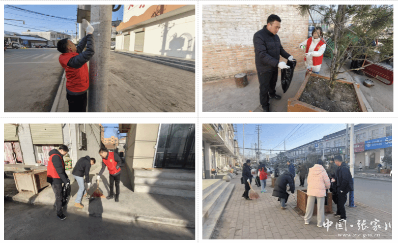 活动现场,身着红马甲的志愿者们化身镇区“文明美容师”。他们手持笤帚、簸箕、铲子等清洁工具,分工协作,对镇内主要街道、卫生死角及公共区域进行了全面清理。三支志愿服务小组各司其职、配合默契,深入主次干道、背街小巷、临街商铺周边,全面清理路面散落垃圾、堆积杂物与公共设施上的“牛皮癣”小广告;耐心引导非机动车规范停放,对占道经营、乱堆乱放等不文明行为进行劝导,助力规整镇区公共秩序。