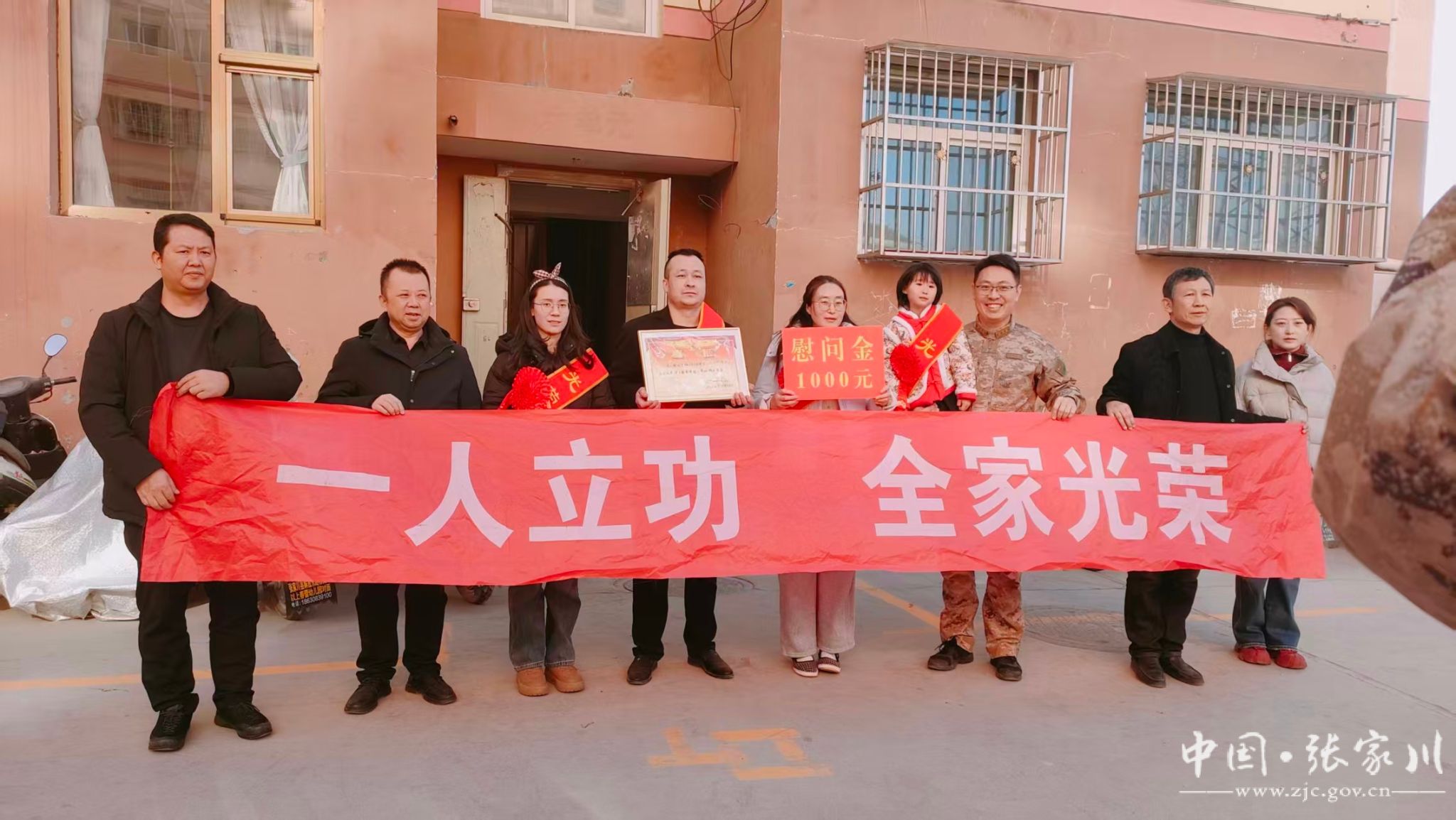 为弘扬拥军优属优良传统,营造“一人立功、全家光荣”的浓厚社会氛围,张家川镇组织专人先后为3名荣立三等功的现役军人家属送去立功喜报、1000元慰问金及慰问品。送喜报现场,工作人员与军属亲切交谈,详细了解他们的生活状况和实际需求,感谢他们为国防和军队建设作出的积极贡献,勉励军属们继续支持军人安心服役、再立新功,让军属们真切感受到党和政府的关怀与温暖,进一步增强了军属的荣誉感、幸福感和获得感。