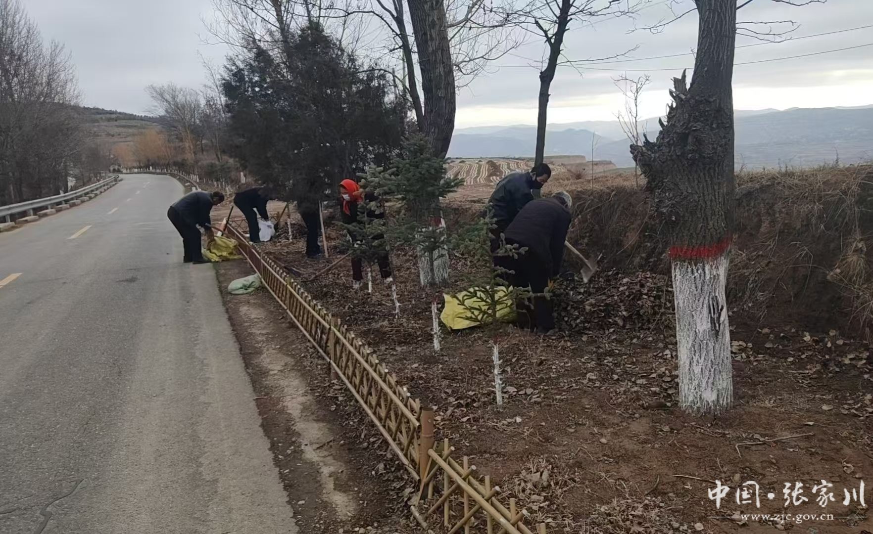 刷树护绿,精细治理提升颜值。在道路沿线、田间地头,乡村干部与群众分工协作,严格按照统一标准为树木“换装”刷白。大家手持毛刷,精心操作,确保刷白高度一致、浓度均匀。这一举措既能杀菌防虫、预防冻害,又能提升道路视觉效果,对过往车辆起到安全警示作用。结合树木刷白,各村同步对道路路肩、边沟进行标准化整修,清除杂草杂物,疏通排水设施,整修绿化带,实现路域环境与乡村颜值的双提升。