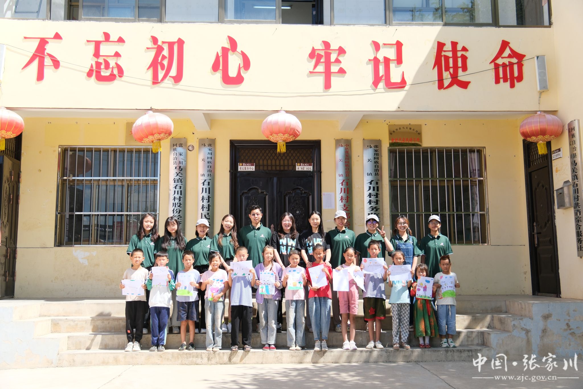 在马关镇石川村村委会二楼,西北师范大学赴张家川县乡村振兴服务队团队成员带领孩子们学习普通话、阅读名著、诵读经典古诗词。孩子们用铅笔写下了对家乡的生日祝福,用画笔绘出了对家乡的美好祝愿。在相机的快门键下,留存了孩子们最纯真的笑脸、最质朴的心愿、最美好的期待。