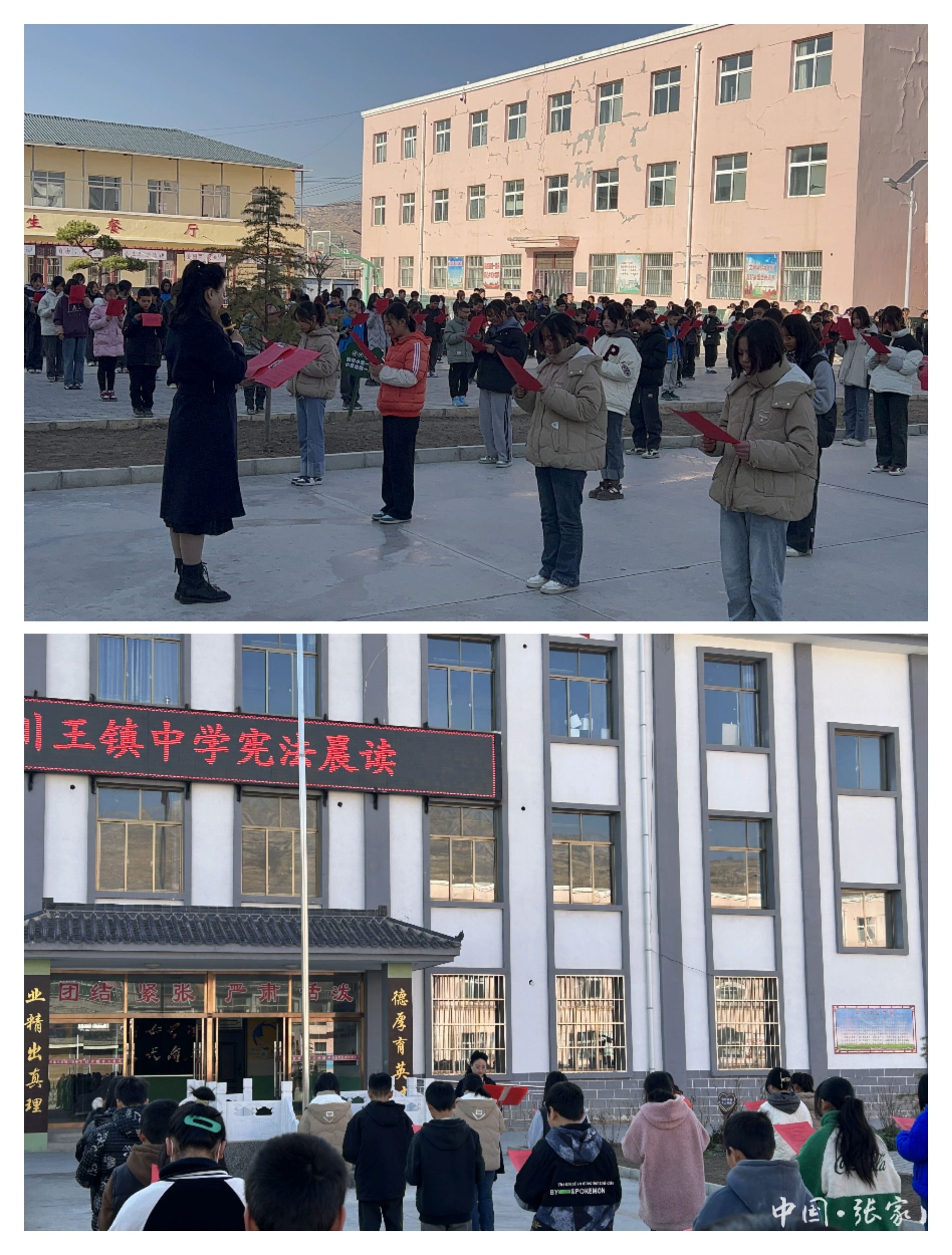 宪法晨读进校园。川王镇中学开展了宪法宣誓、宪法晨读等一系列教育活动。全体师生面向国旗,举起右拳,在学区负责人的带领下庄严宣誓,全体师生进行宪法晨读活动,让师生感受到宪法的尊严,引导青少年树立宪法法律意识,养成尊法守法习惯。