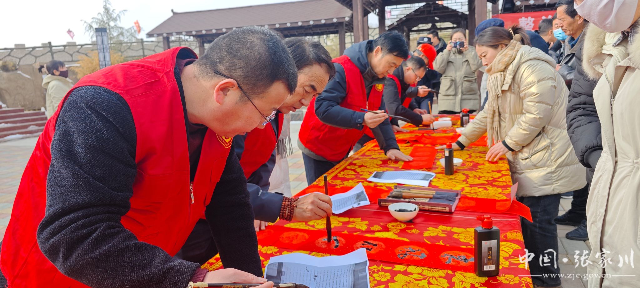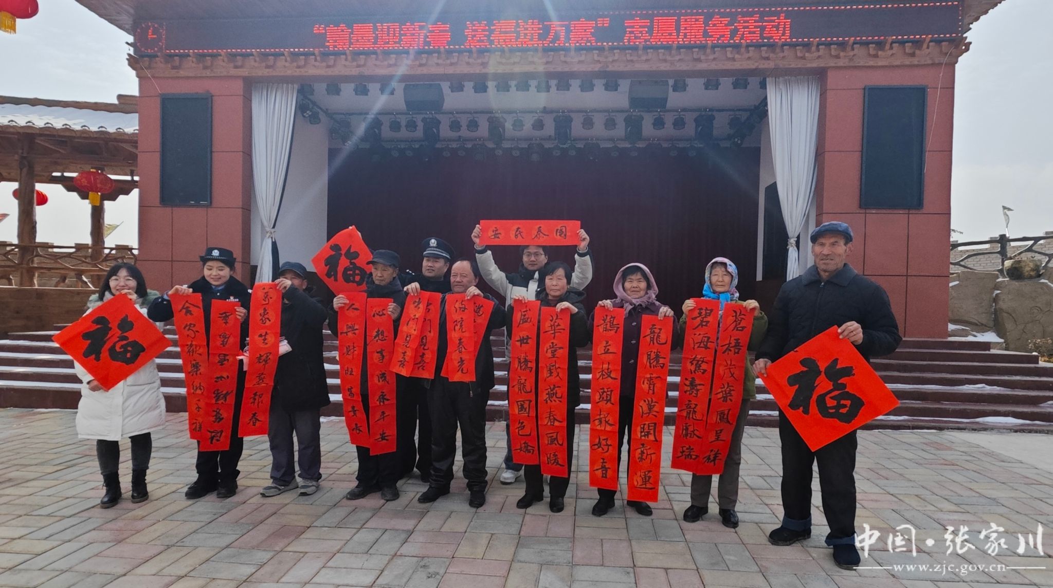 发扬传统文化,增强文化自信。“千门万户曈曈日,总把新桃换旧符”。写春联、贴福字是中国人民过年必不可少的仪式之一,也是中华民族悠久的文化传统。2月6日,特邀请张家川县文化交流中心多位书法家在汪堡村现场进行写作对联,为群众送上一场翰墨飘香的书法盛宴。书法家们笔走龙蛇、挥毫泼墨,活动现场其乐融融、年味浓厚,吸引了众多群众,增添了欢乐祥和的节日氛围,并让老百姓感受传统书法的魅力。此次活动累计送出春联150余副,“福”字200余个。
